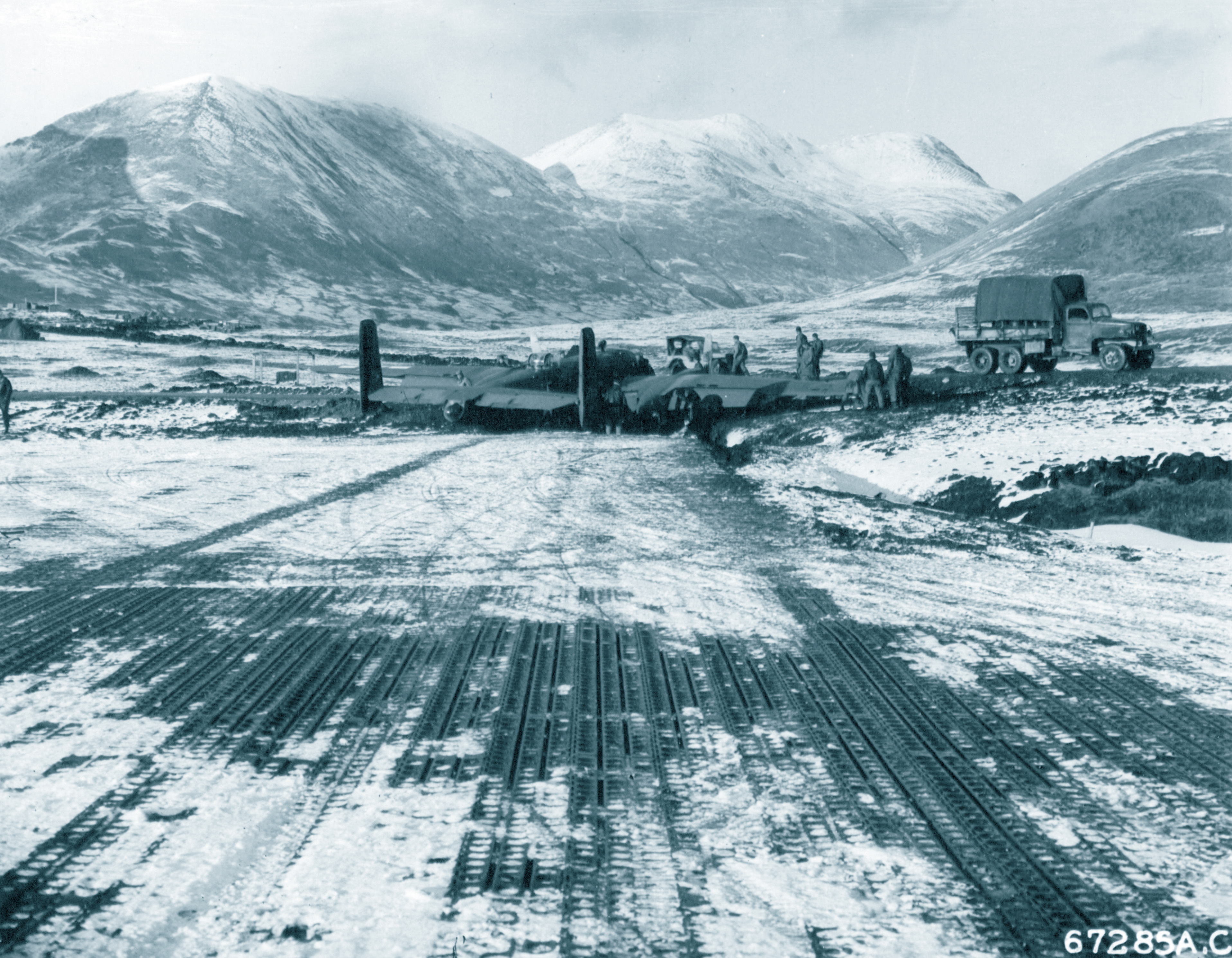 B 25G Mitchell damaged by a landing aircraft at Alexai Point Attu Aleutian Islands 13th Nov 1943 NA458