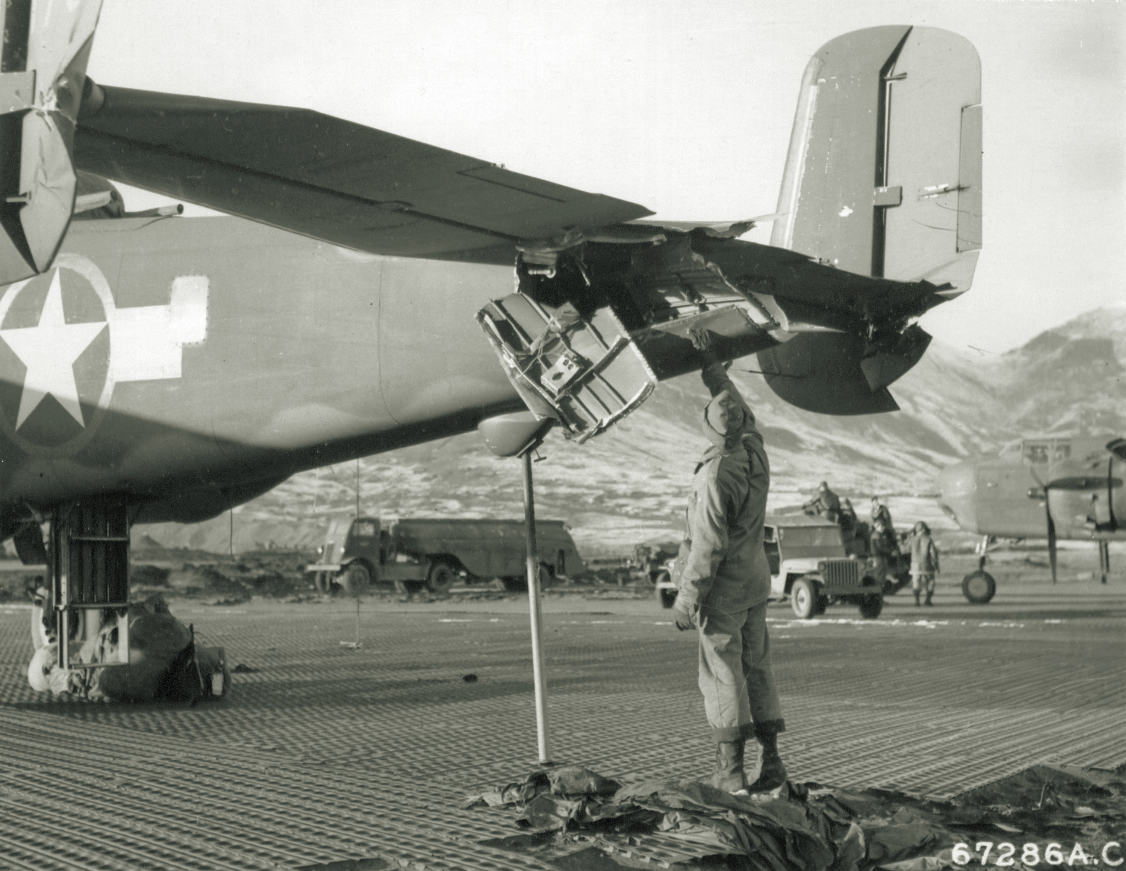 B 25G Mitchell damaged by a landing aircraft at Alexai Point Attu Aleutian Islands 13th Nov 1943-NA460