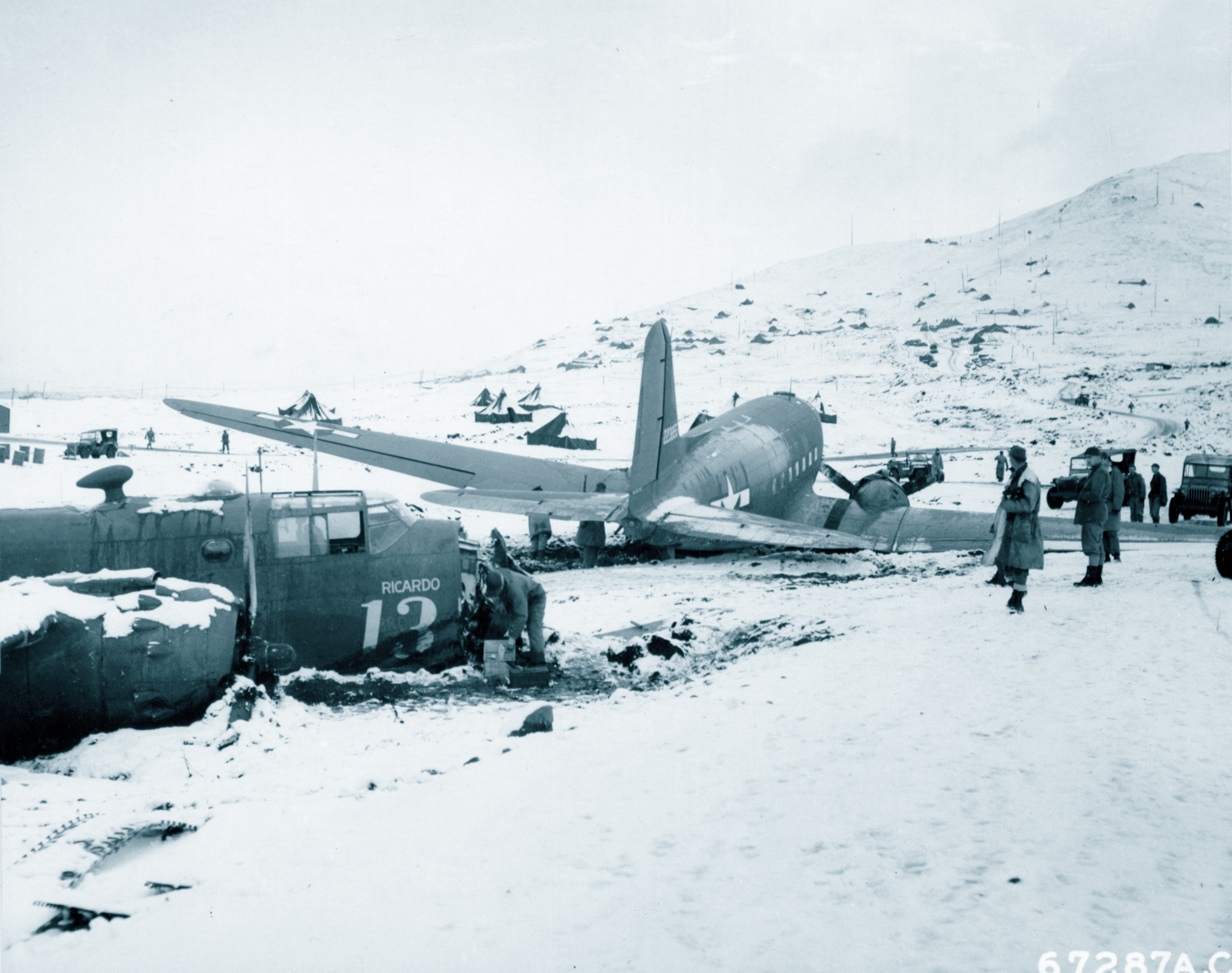 B 25G Mitchell damaged by a landing aircraft at Alexai Point Attu Aleutian Islands 13th Nov 1943 NA462