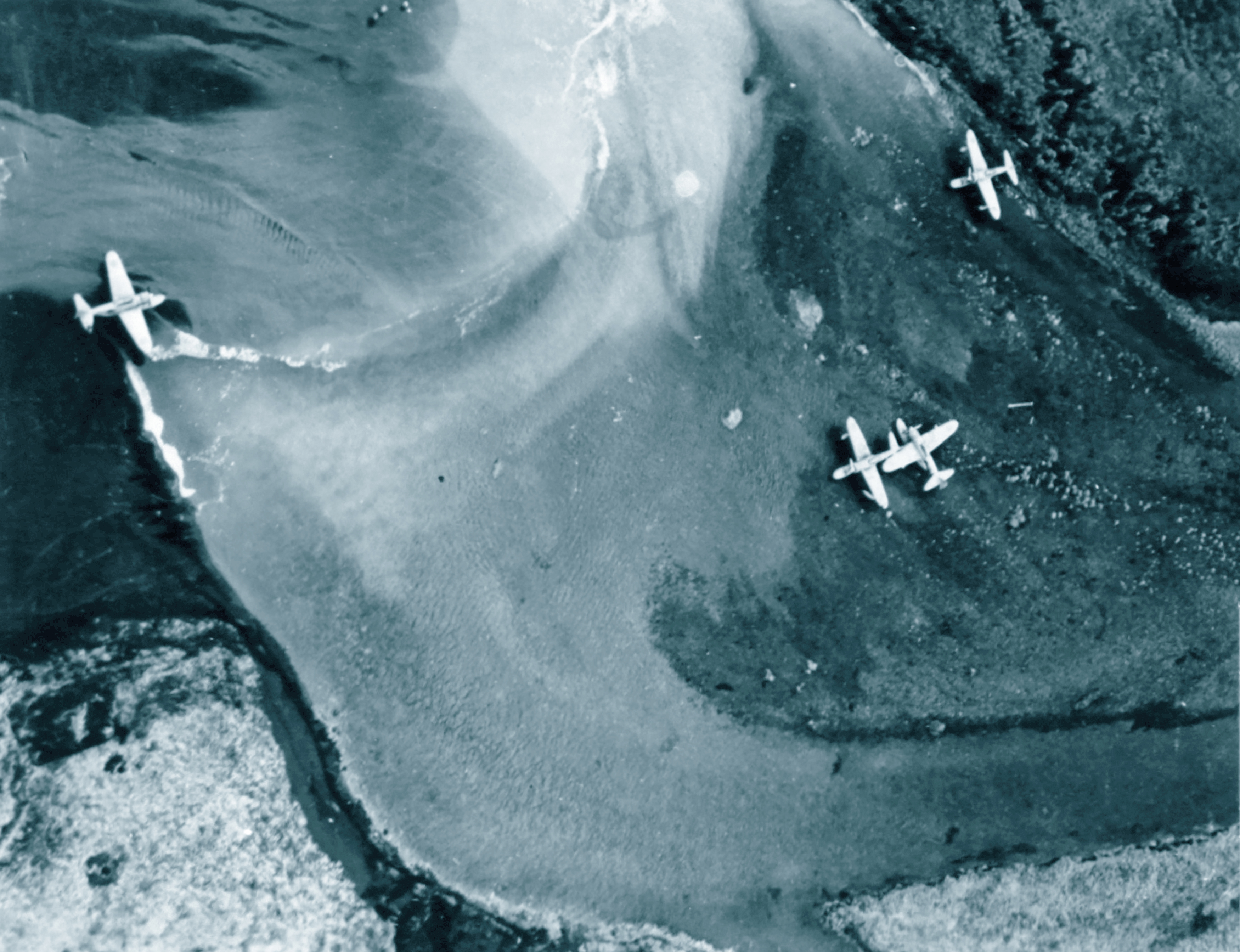 IJAAF Nakajima A6M2N Zero float planes code name RUFE damaged in a storm on the beach at Attu 1943-NA416