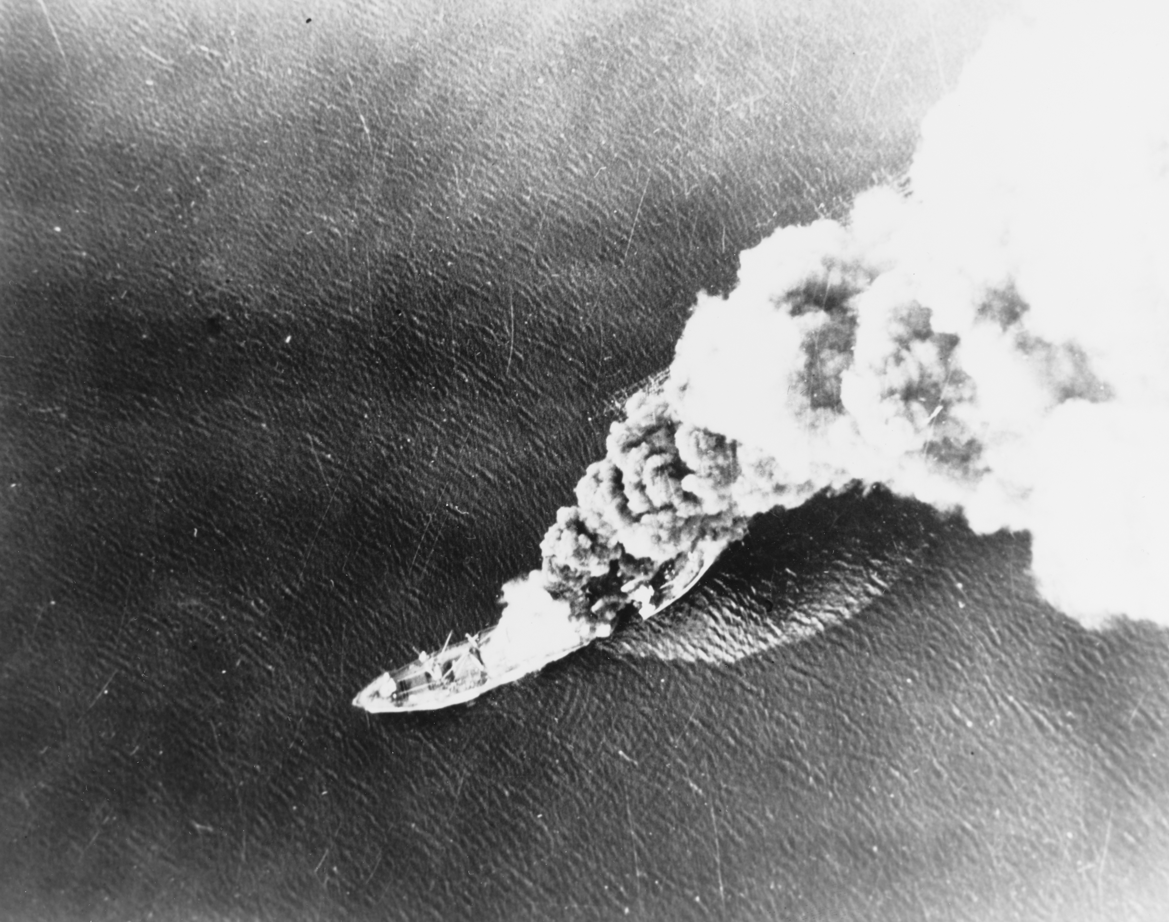 Japanese transport Nissan Maru is burning and breaking up after a USAAF attack at Kiska Harbor 18th June 1942-80 G 11683