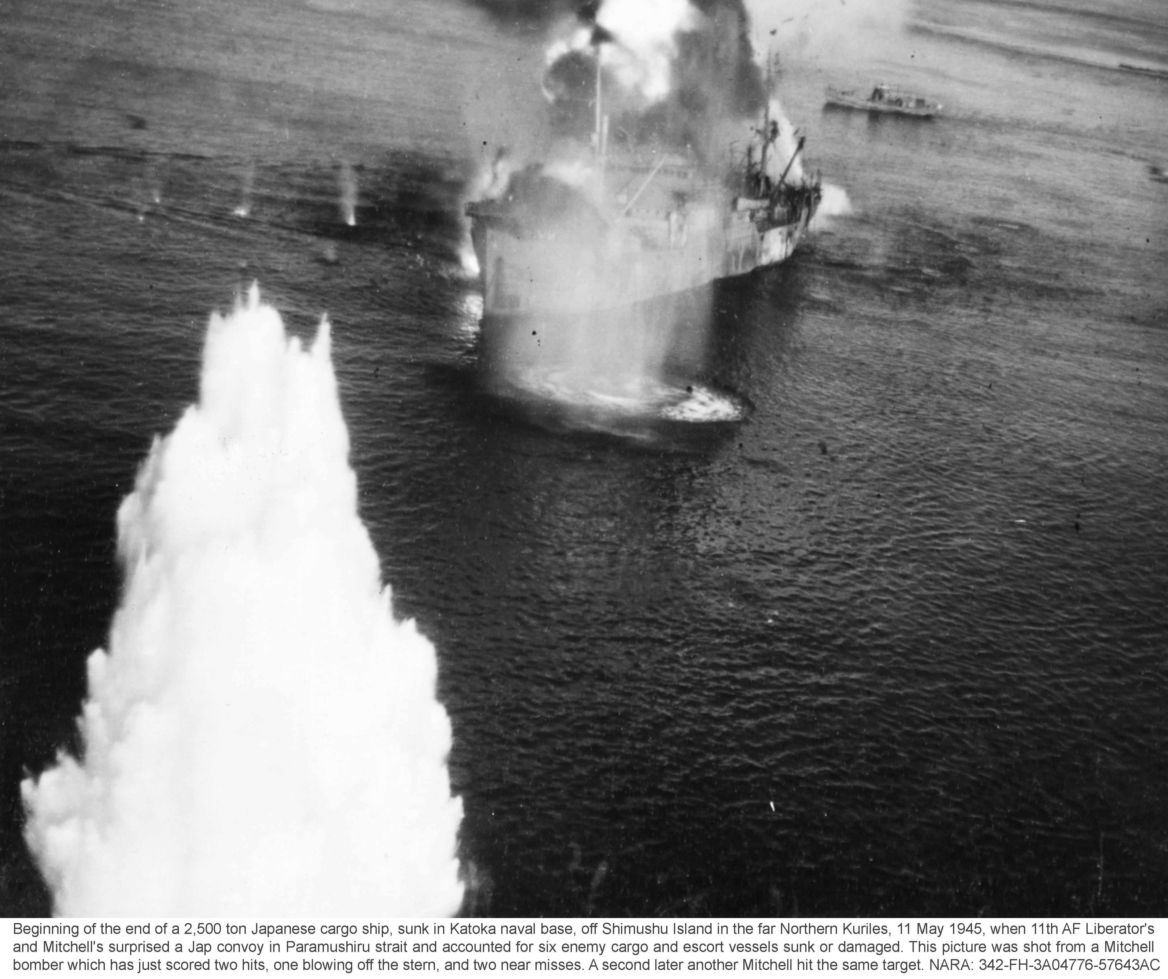 Target 11AF sink Japanese Cargo ship in the Kataoka Shimushu Island Kurile Isls 10th May 1945 04