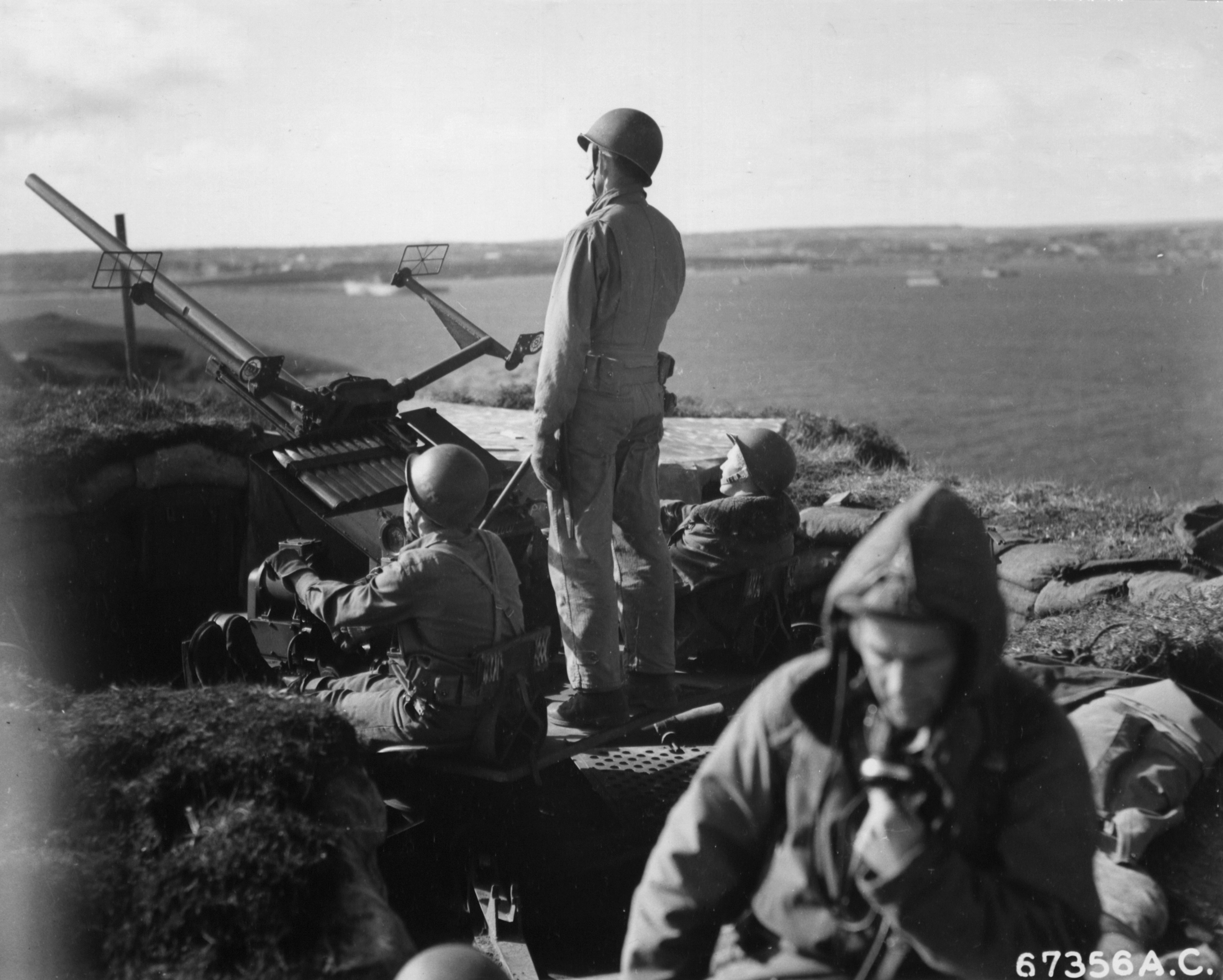 USAAF ground defenses 37mm anti aircraft gun crew somewhere in Andreanoff group 1943-NA1140