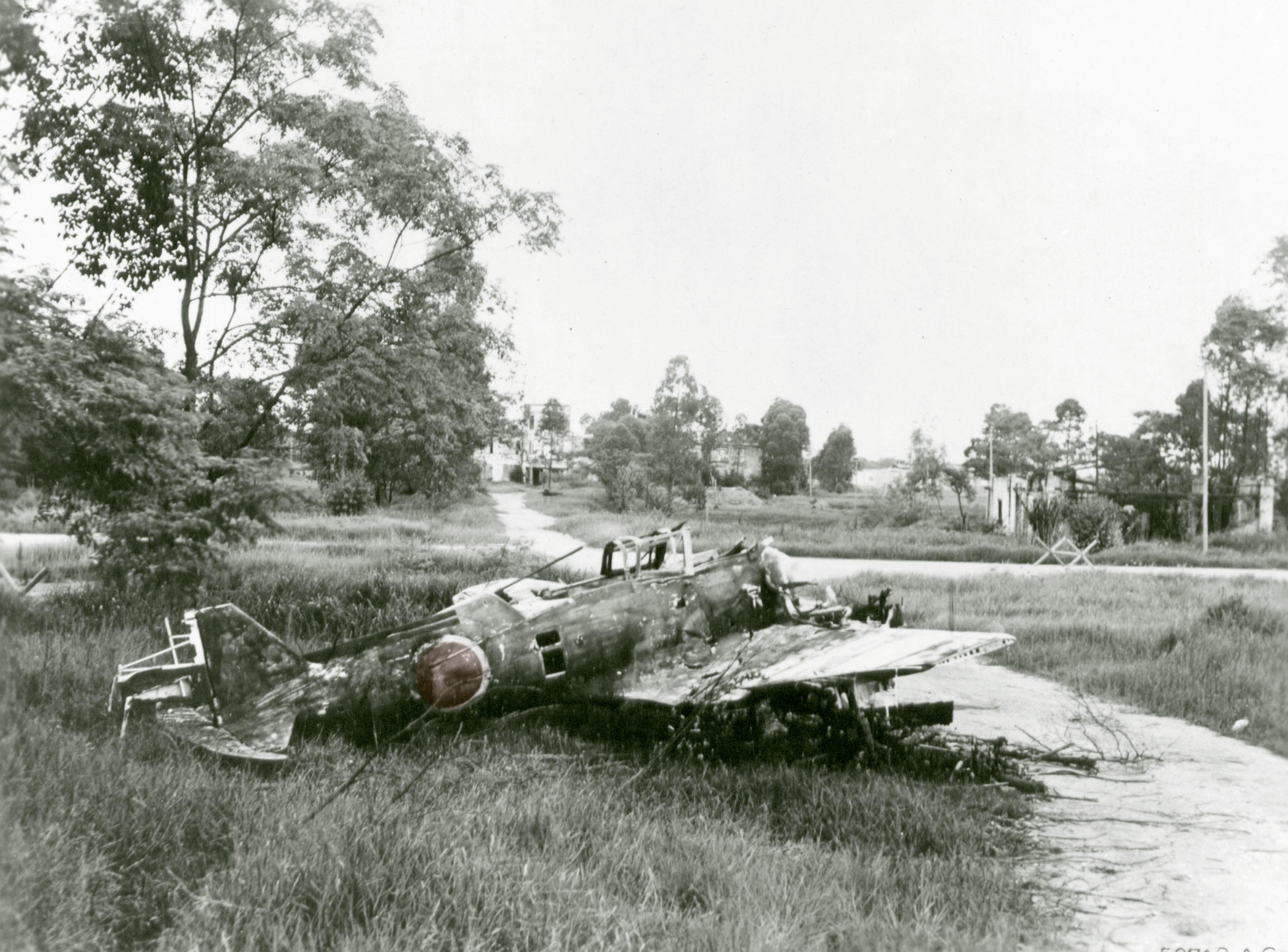 IJAAF Aichi D3A2 VAL dive bomber destroyed on the ground by 14AF fighters in China 1945 NA1292