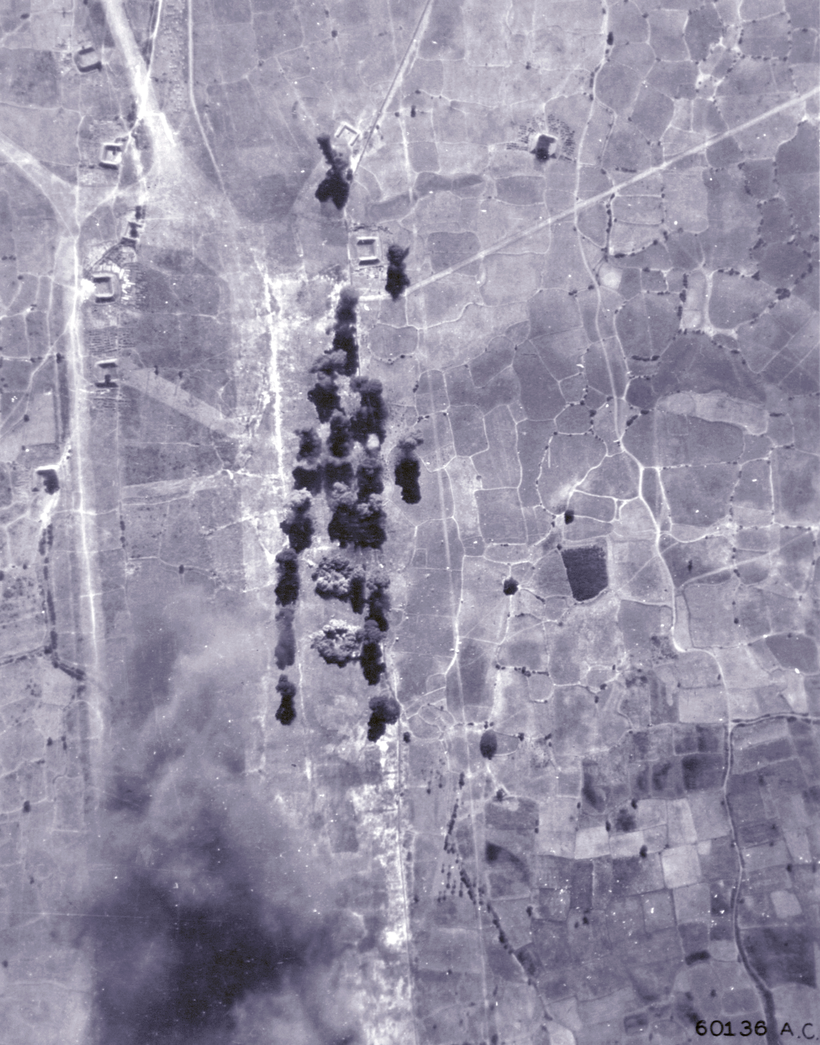 Target 10AF 12BG B 25 Mitchells bomb the Kwetnge airfield Meiktila Burma NA576