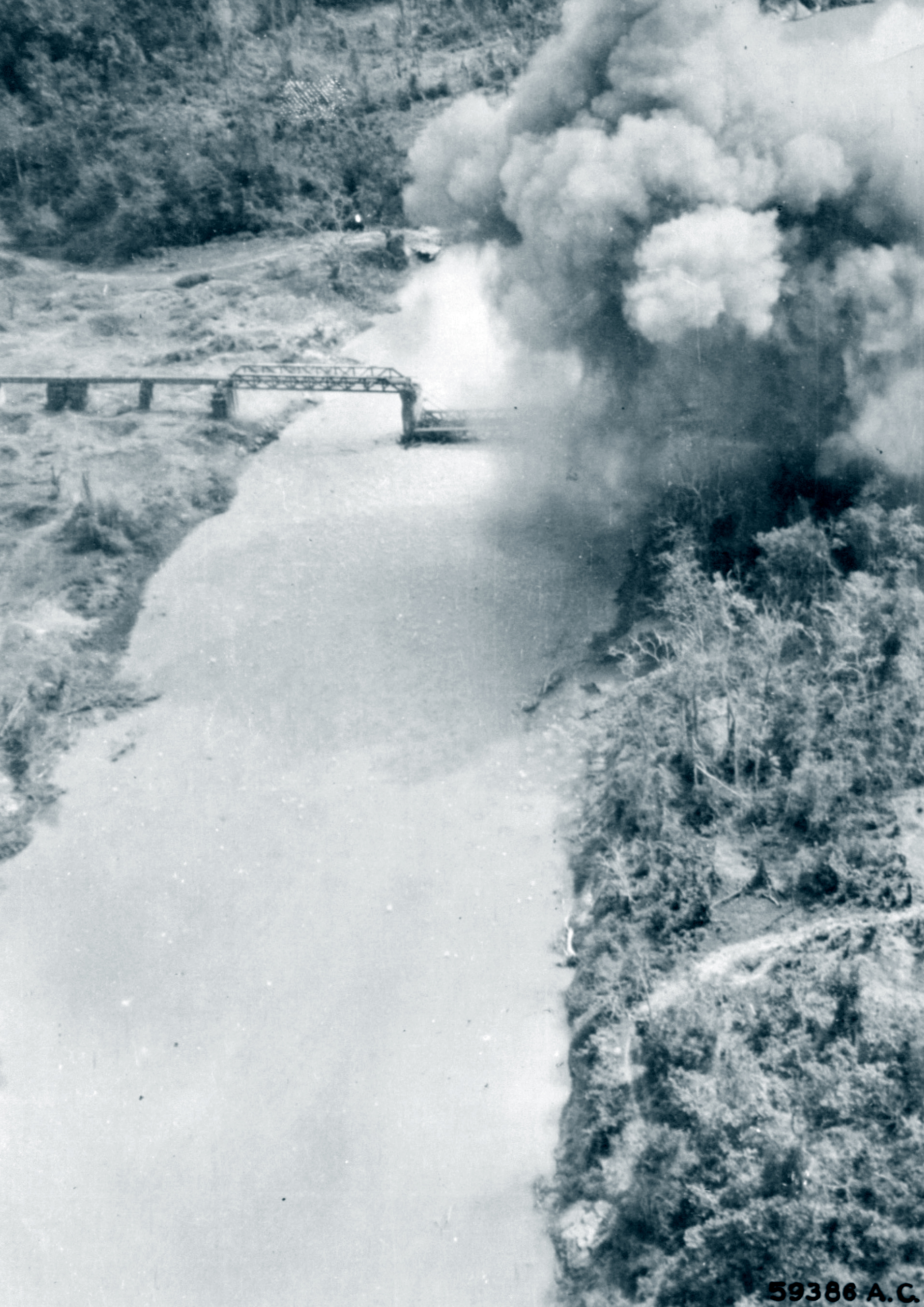 Target 10AF 1ACG under Col Philip Cochran's bomb the bridge at Meza Burma NA591