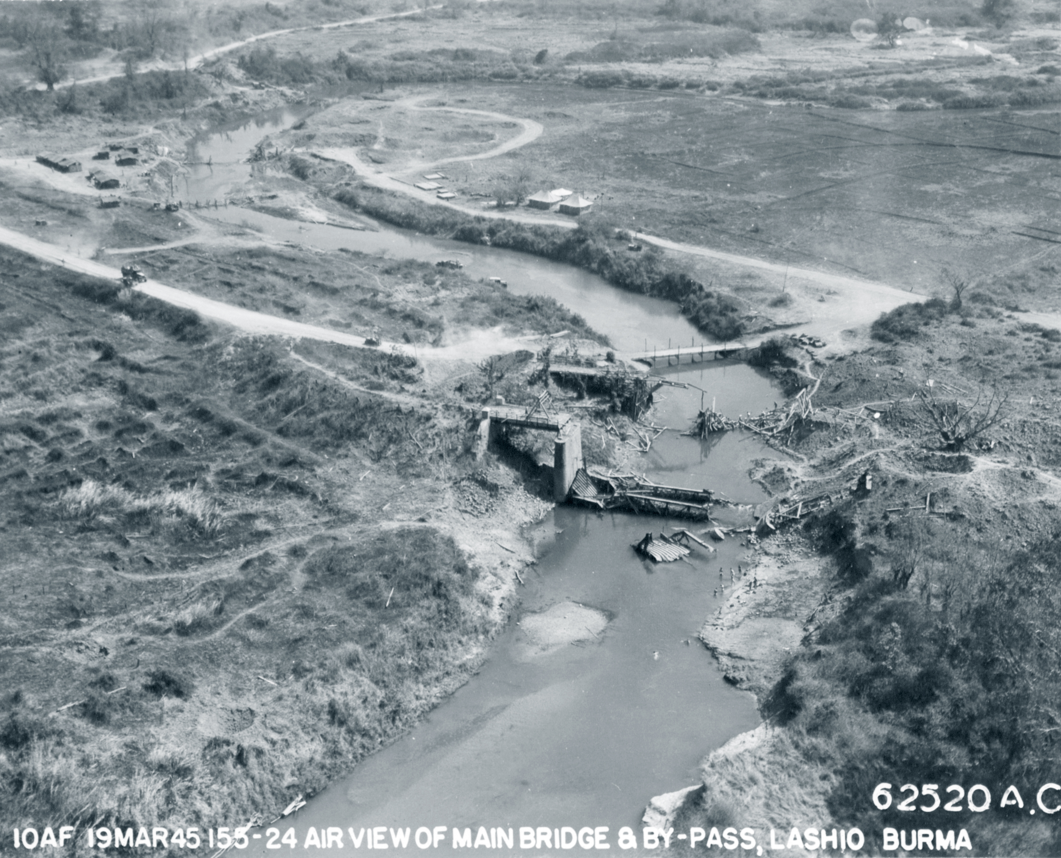 Target 10AF bomb damage at Lashio after being captured Shan State Burma 19th Mar 1945-NA510