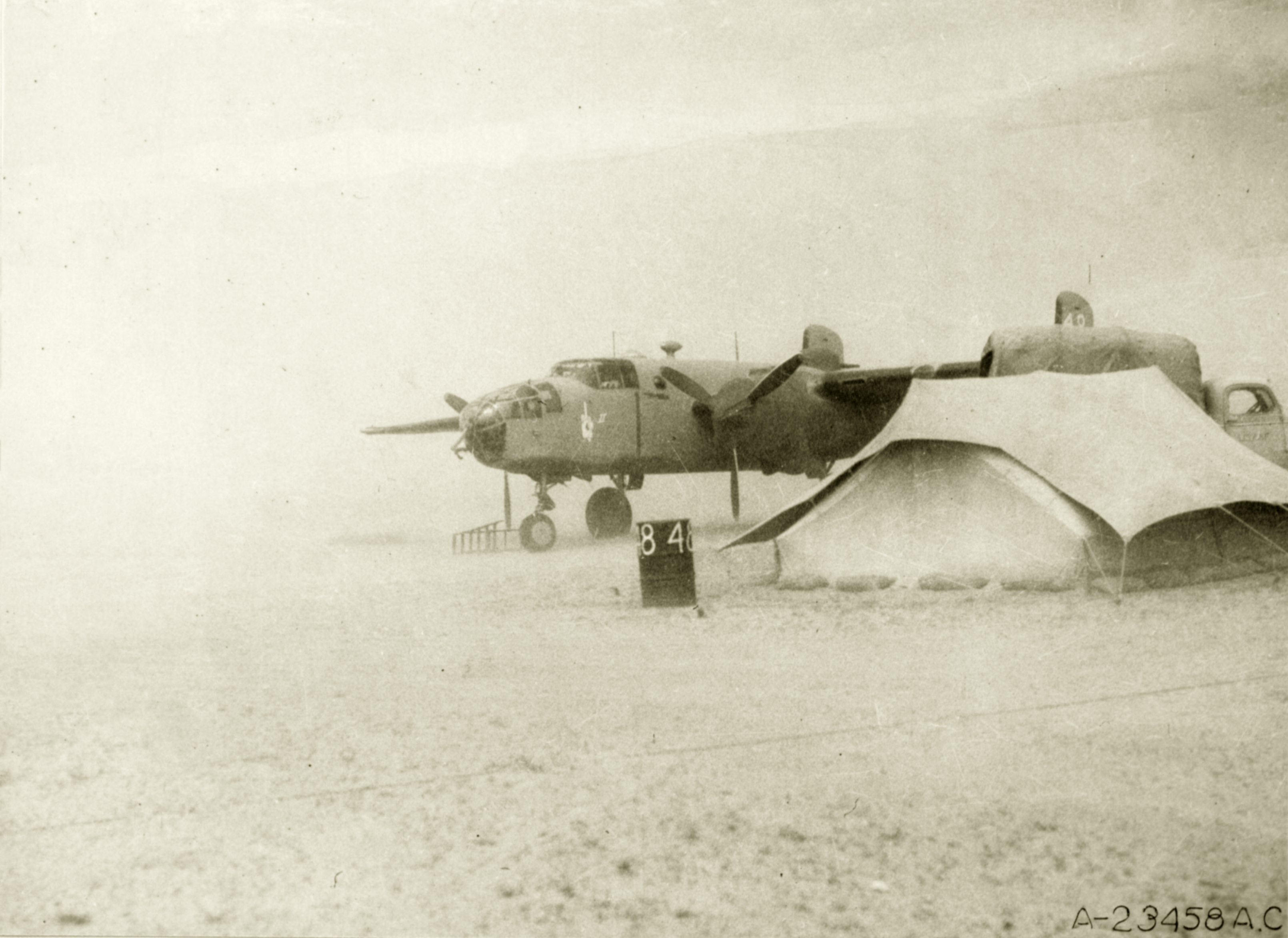 41-12952 B 25C Mitchell 9AF 12AF 12BG 48 Fickle Finger II during a Sandstorm Cairo Egypt 1943-NA852