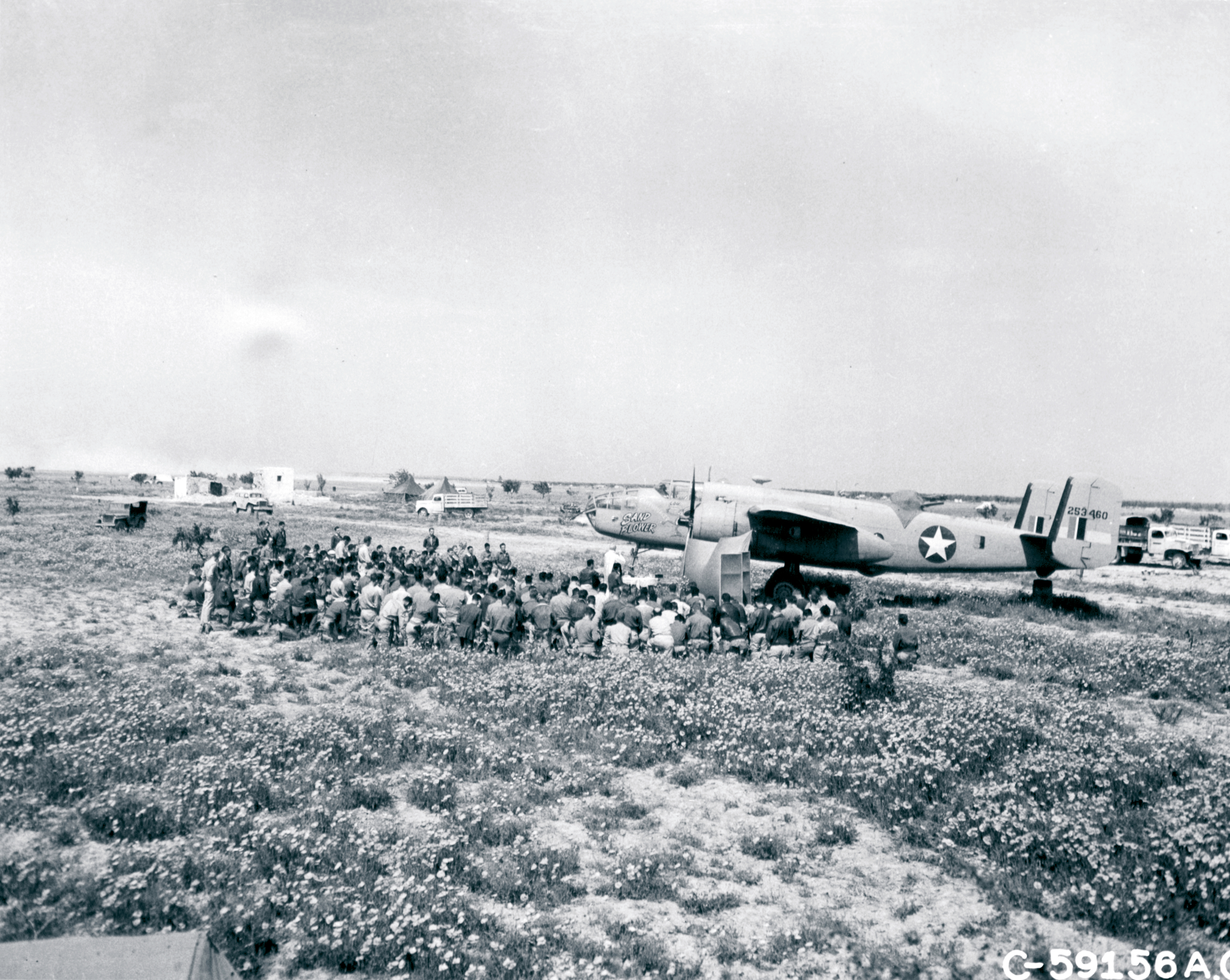 42 53460 B 25C Mitchell 9AF Sand Blower during a Easter service in North Africa April 1943 NA602