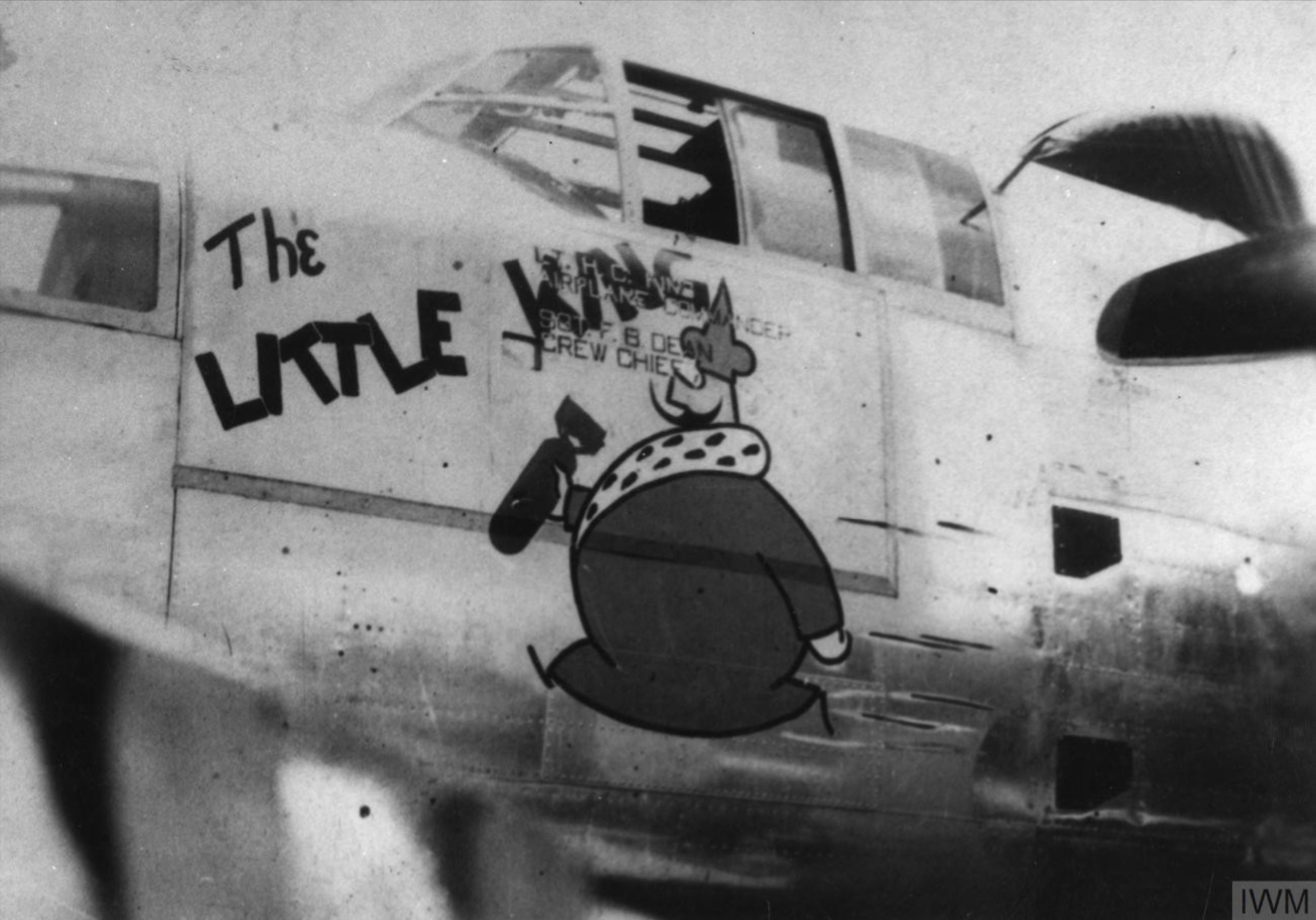 43 27676 B 25J Mitchell 12AF 310BG380BS The Little King nose art left side FRE11796