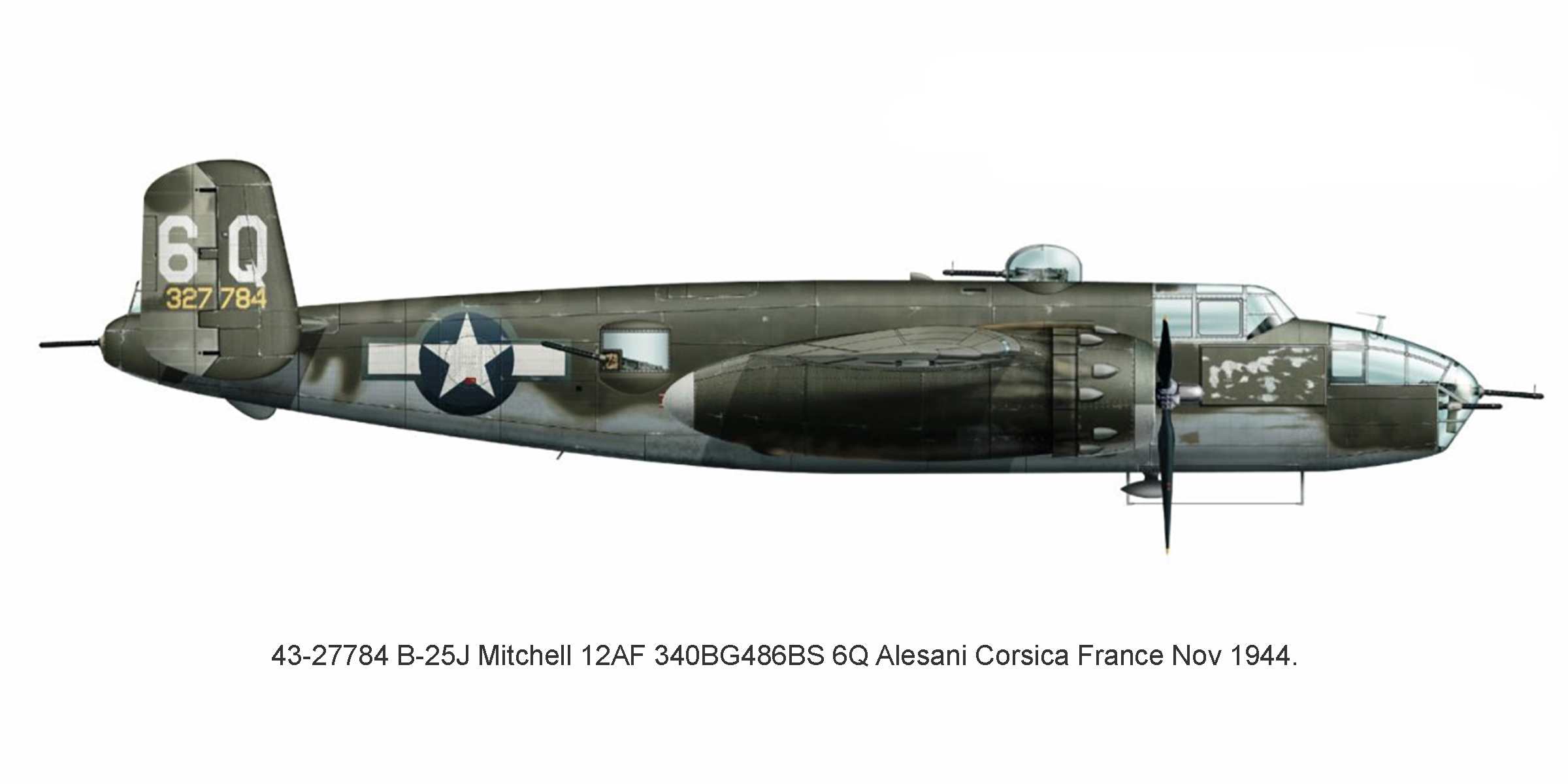 43-27784 B 25J Mitchell 12AF 340BG486BS 6Q Alesani Corsica France Nov 1944-0A