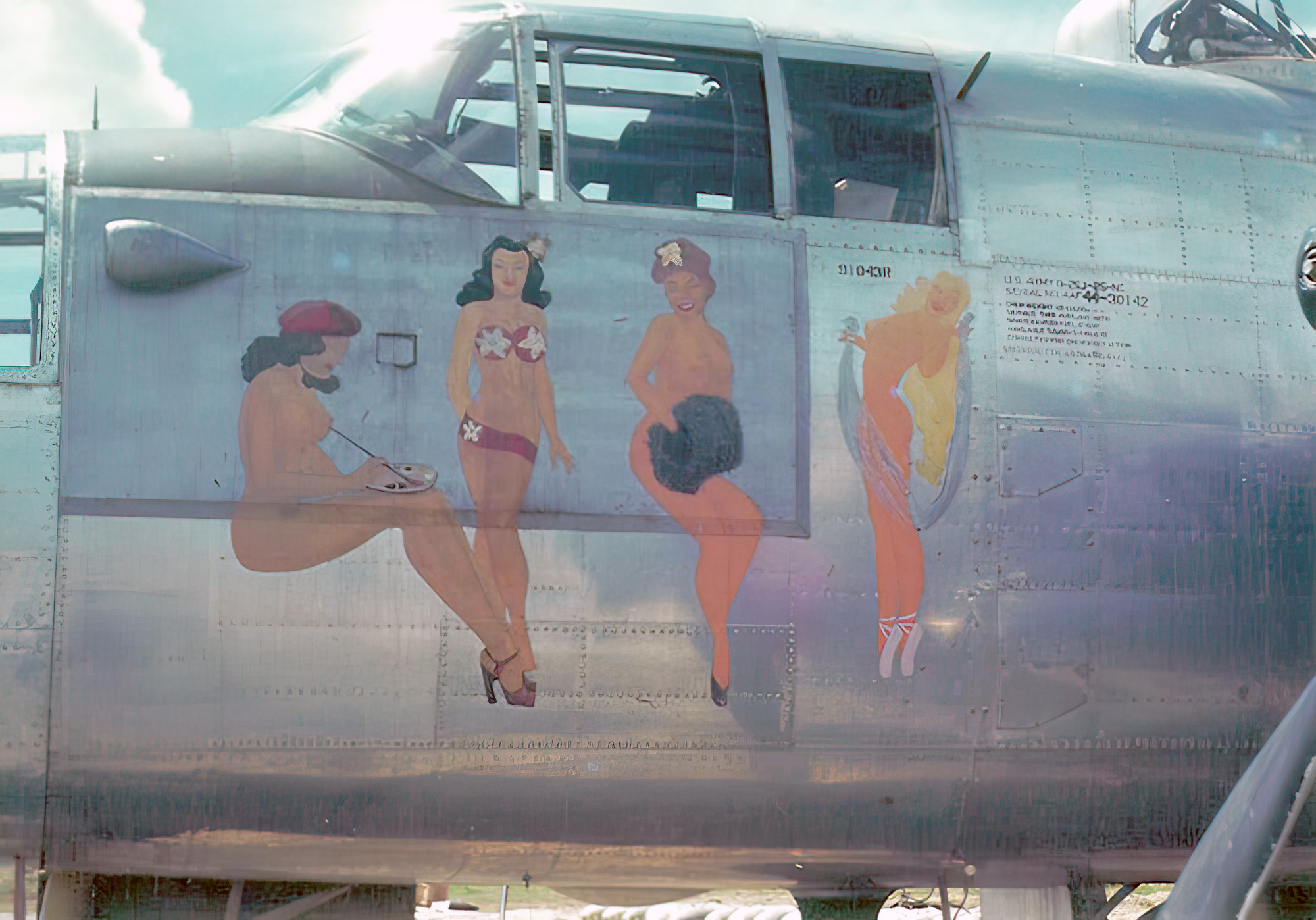 44-30142-B 25J Mitchell 12AF Four Girls nose art left side 01