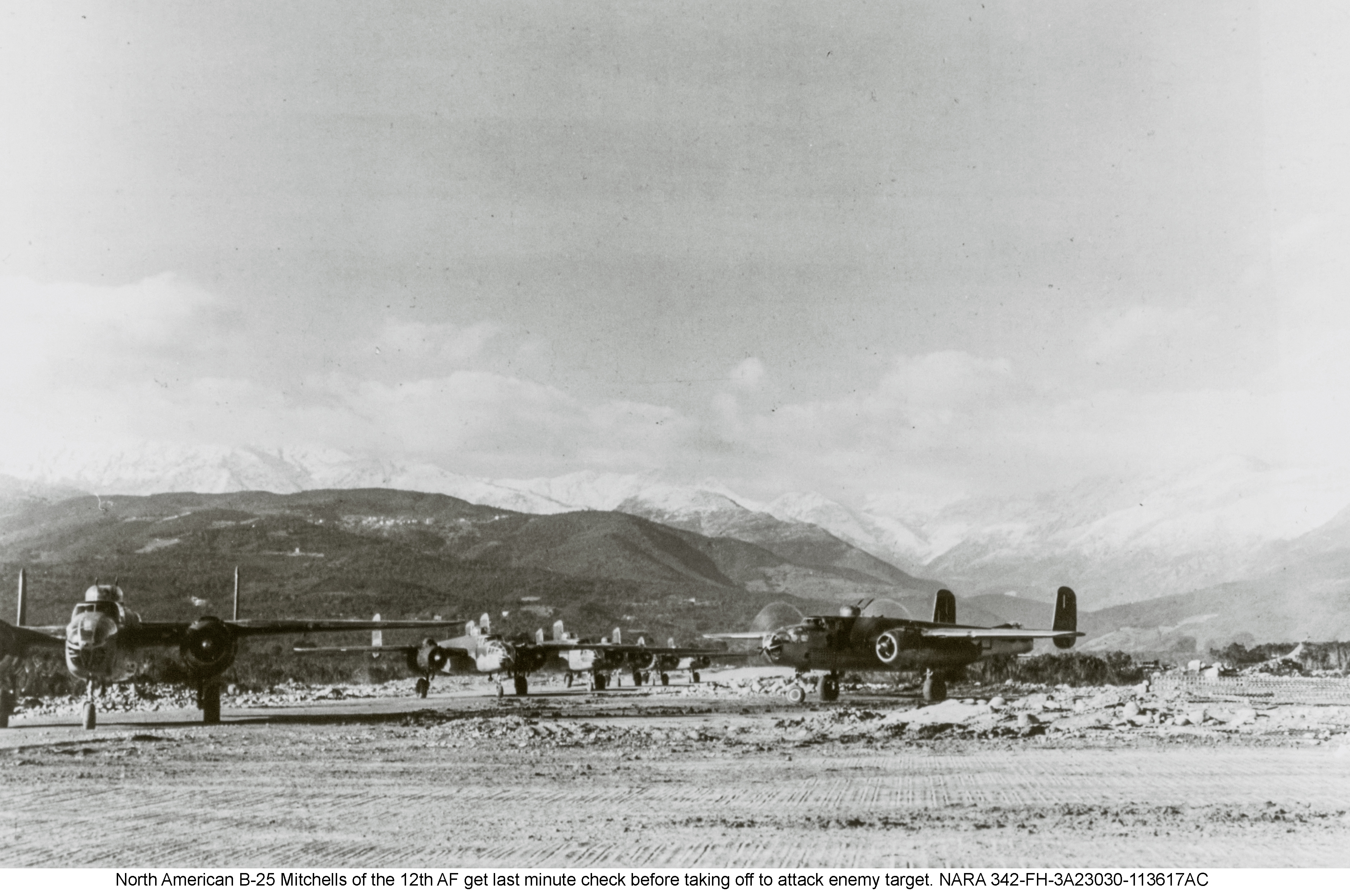B 25 Mitchells 12AF 321BG445BS Solenzara Corsica preparing to leave for their next target Dec 1944-01