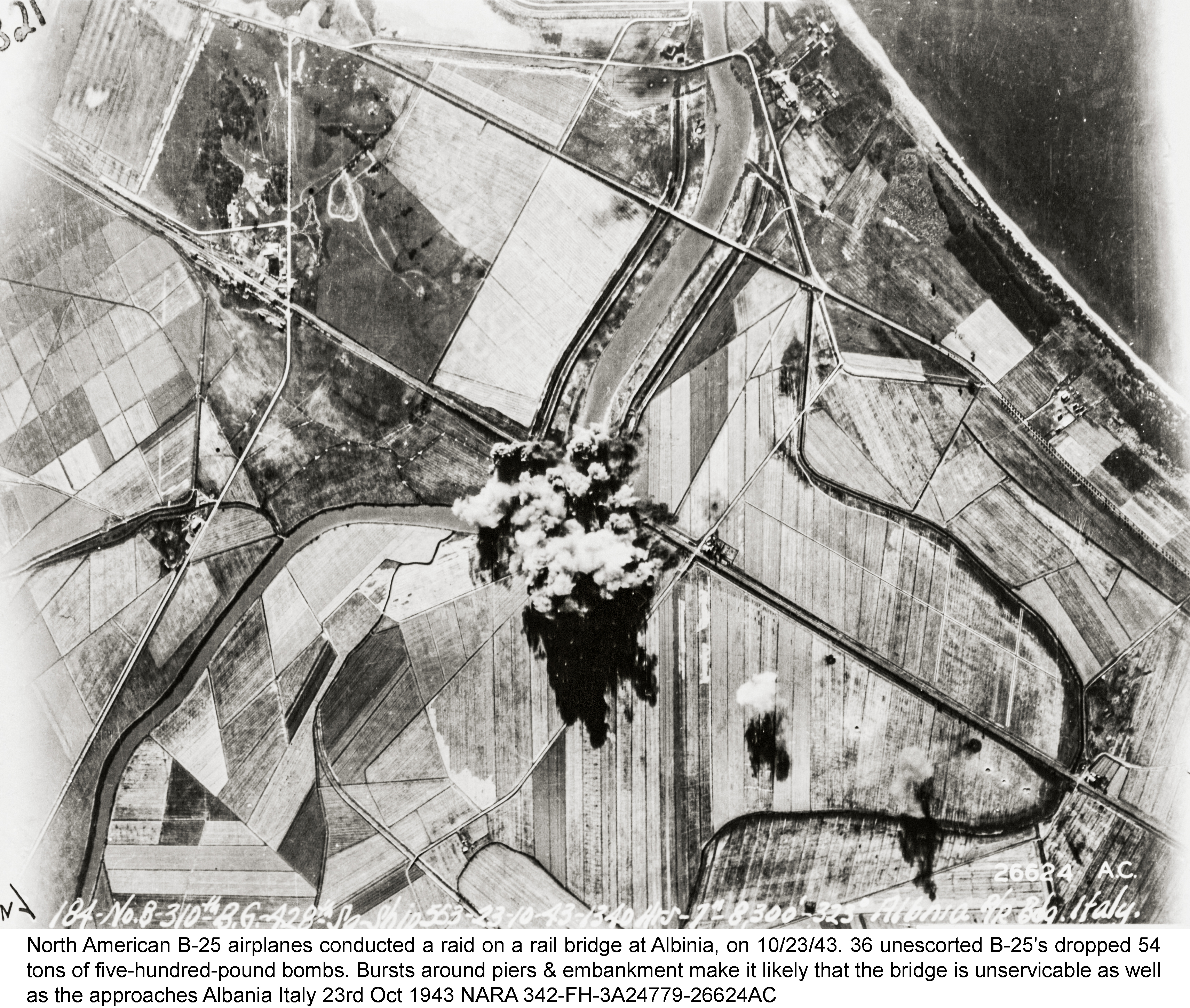 Target 12AF B 25 Mitchells bomb rail bridge at Albania Italy 23rd Oct 1943-01