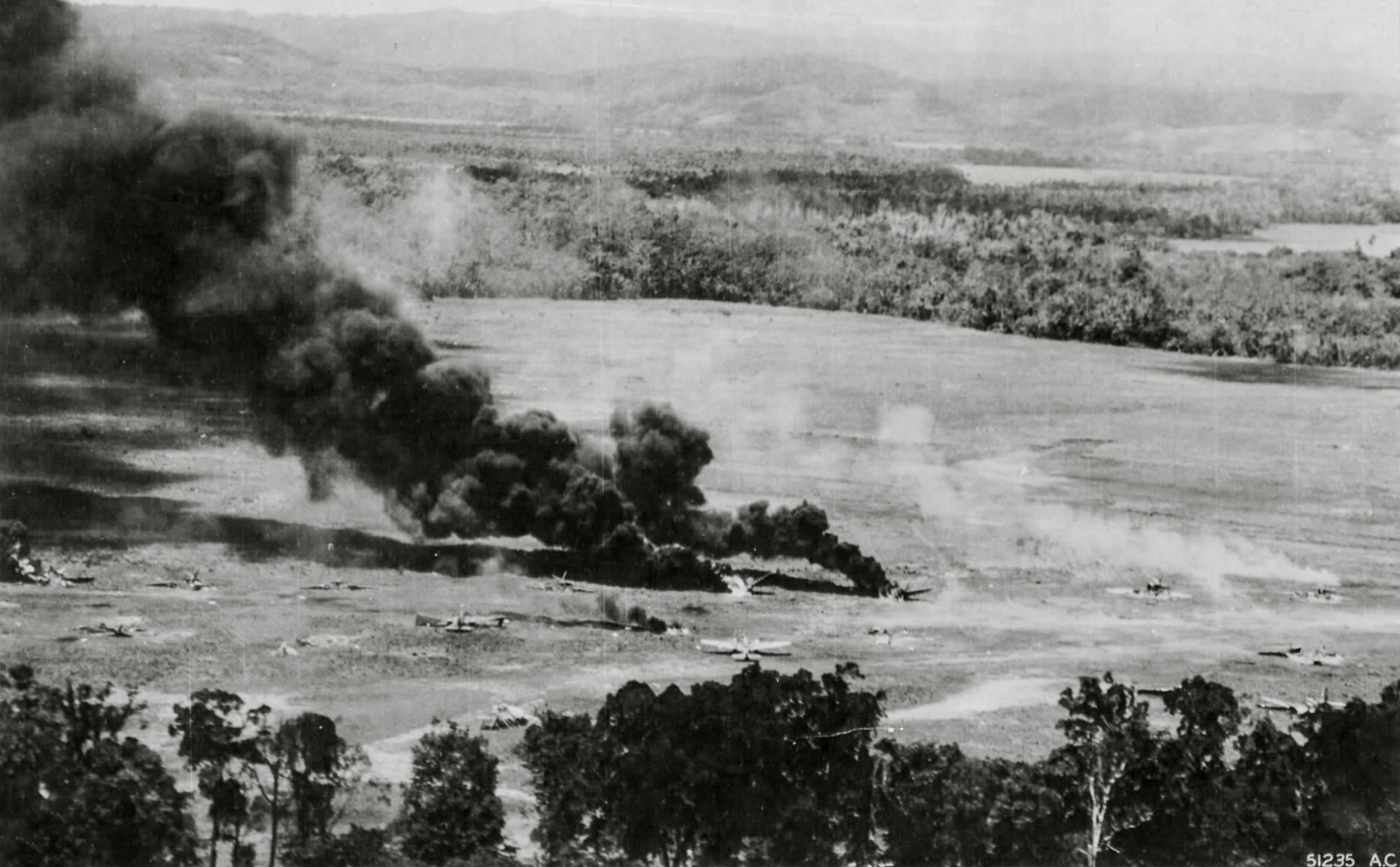 345BG501BS B 25 Mitchells straffing Japanese aircraft over Hollandia New Guinea 3rd Apr 1945-01
