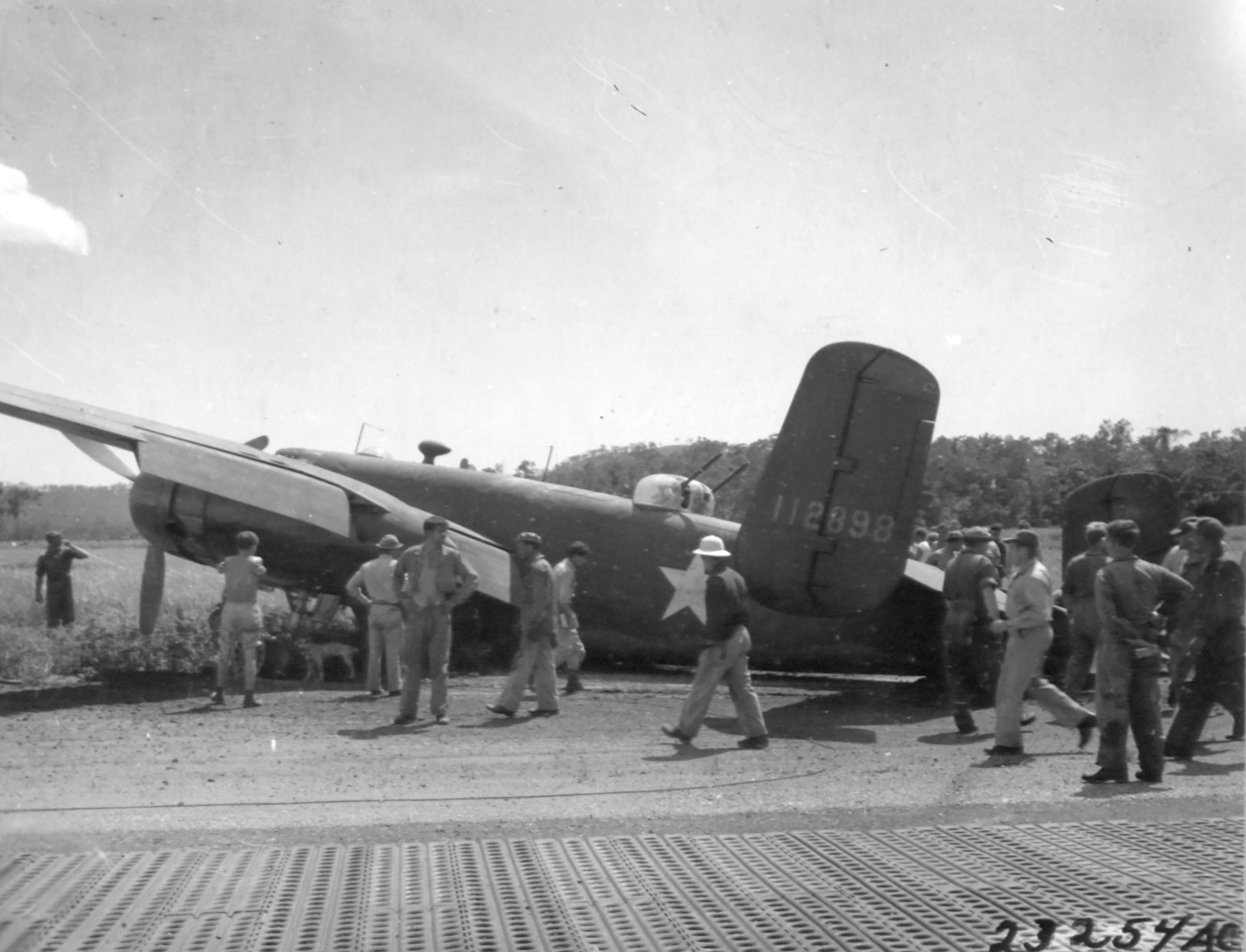 41 12898 B 25C Mitchell locked break wheel on landing Wewak New Guinea 21st Jun 1943 NA552a