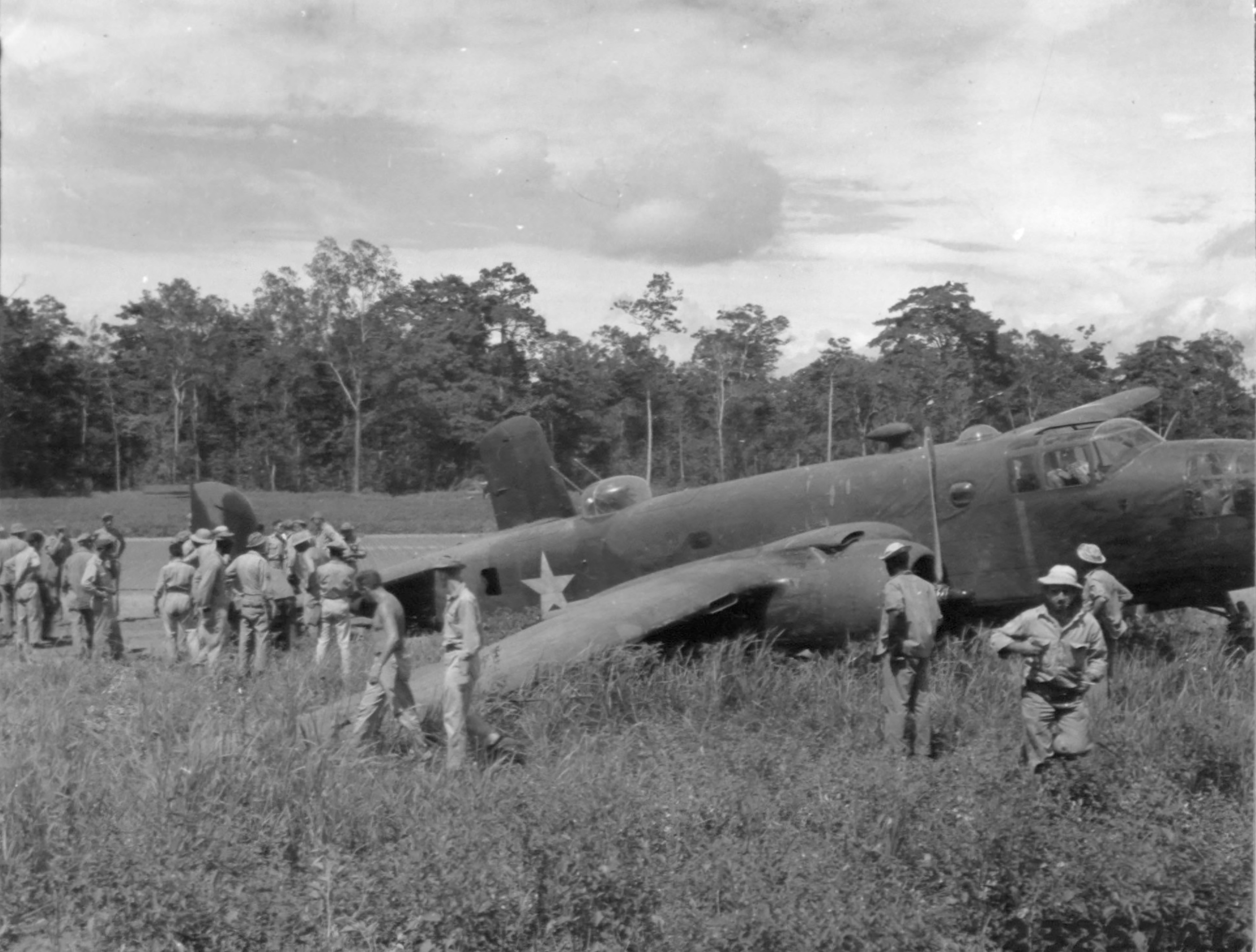 41-12898 B 25C Mitchell locked break wheel on landing Wewak New Guinea 21st Jun 1943-NA552b