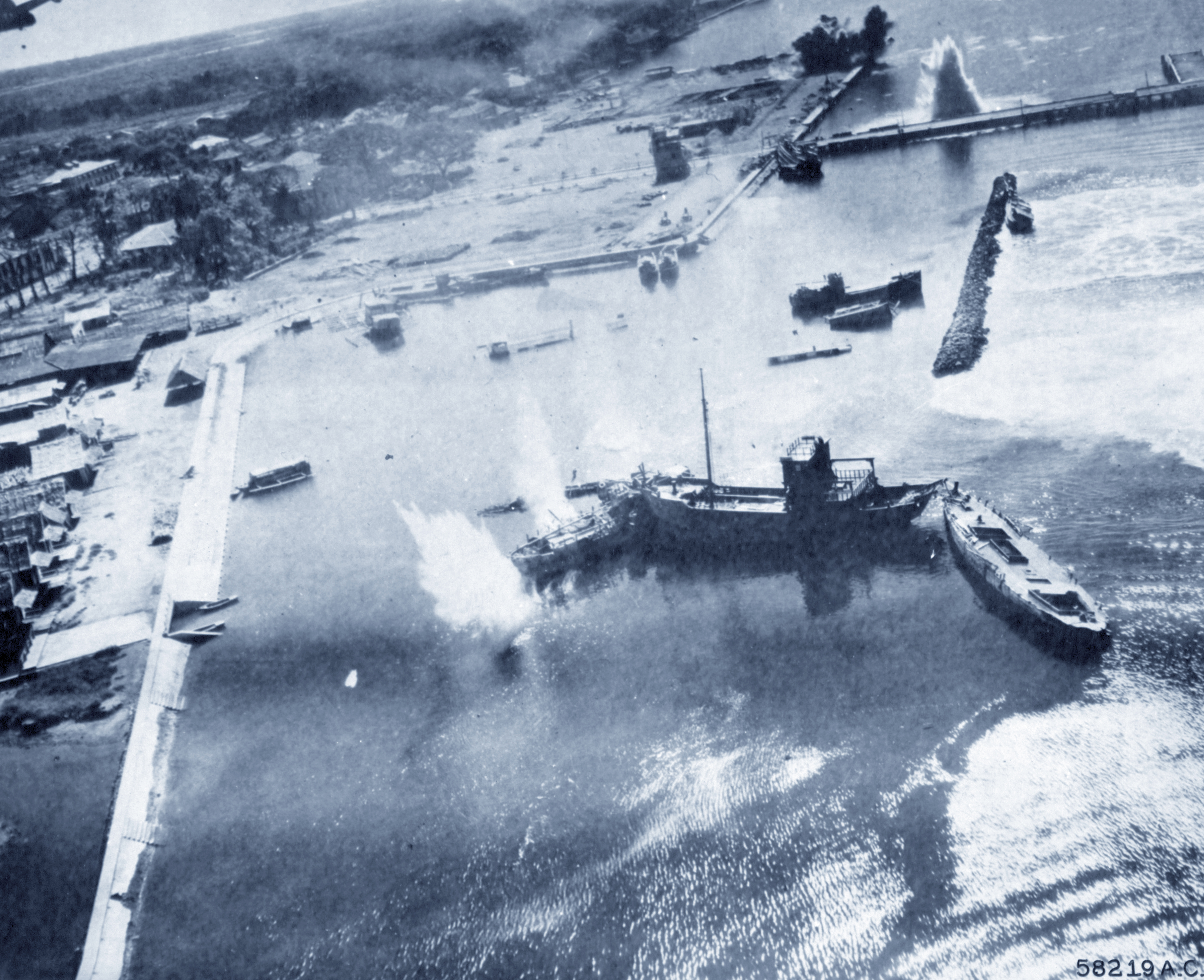 5AF 38BG Sun Setters come in low on a strafing run at Zamboanga Mindanao Philippines 1945 NA318