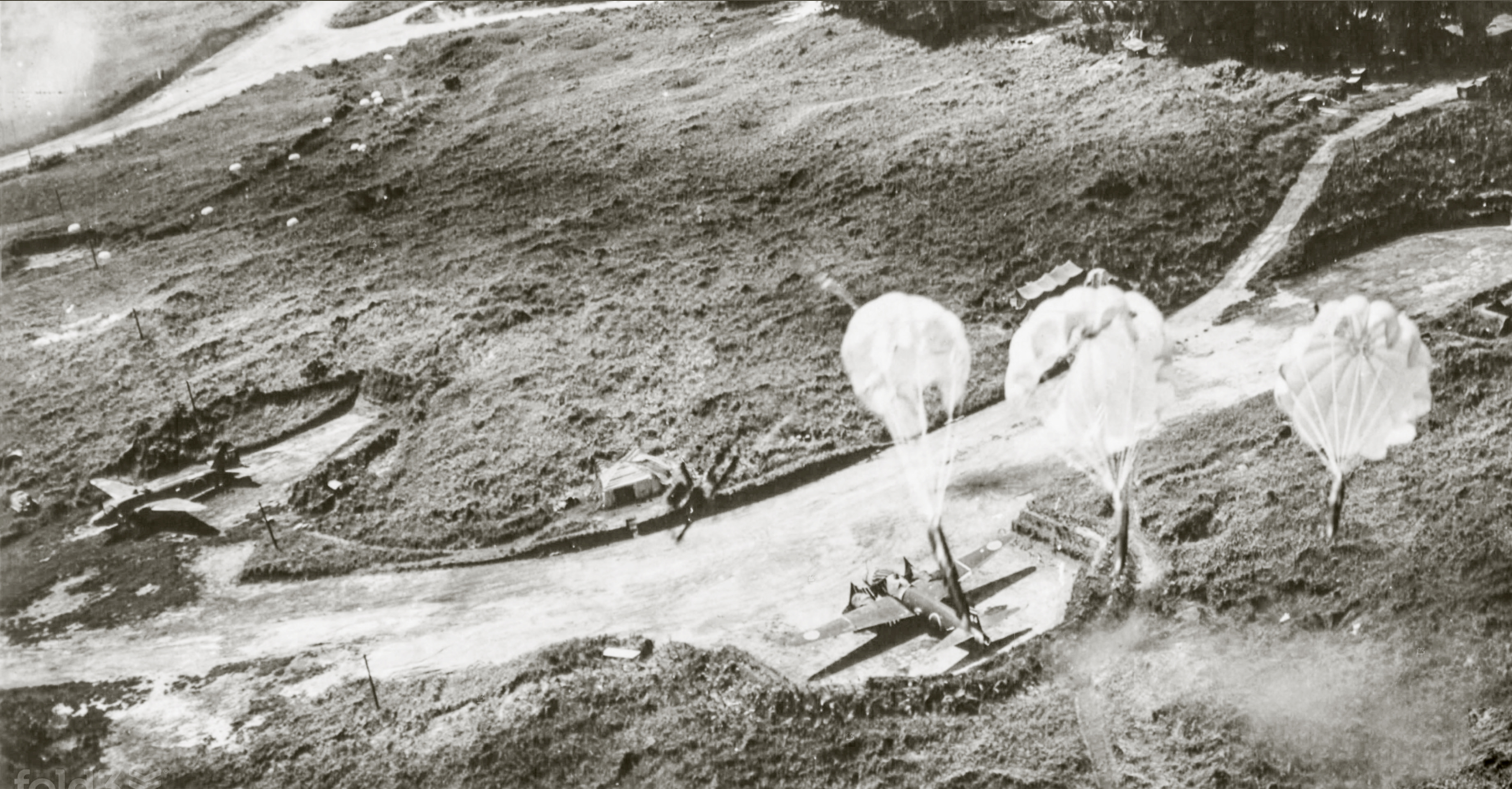 5AF B 25 Mitchells Parachute bombing of Mitsubishi G4M betty at Vunakanau Airdrome Rabaul New Britain 12th Oct 1943 04