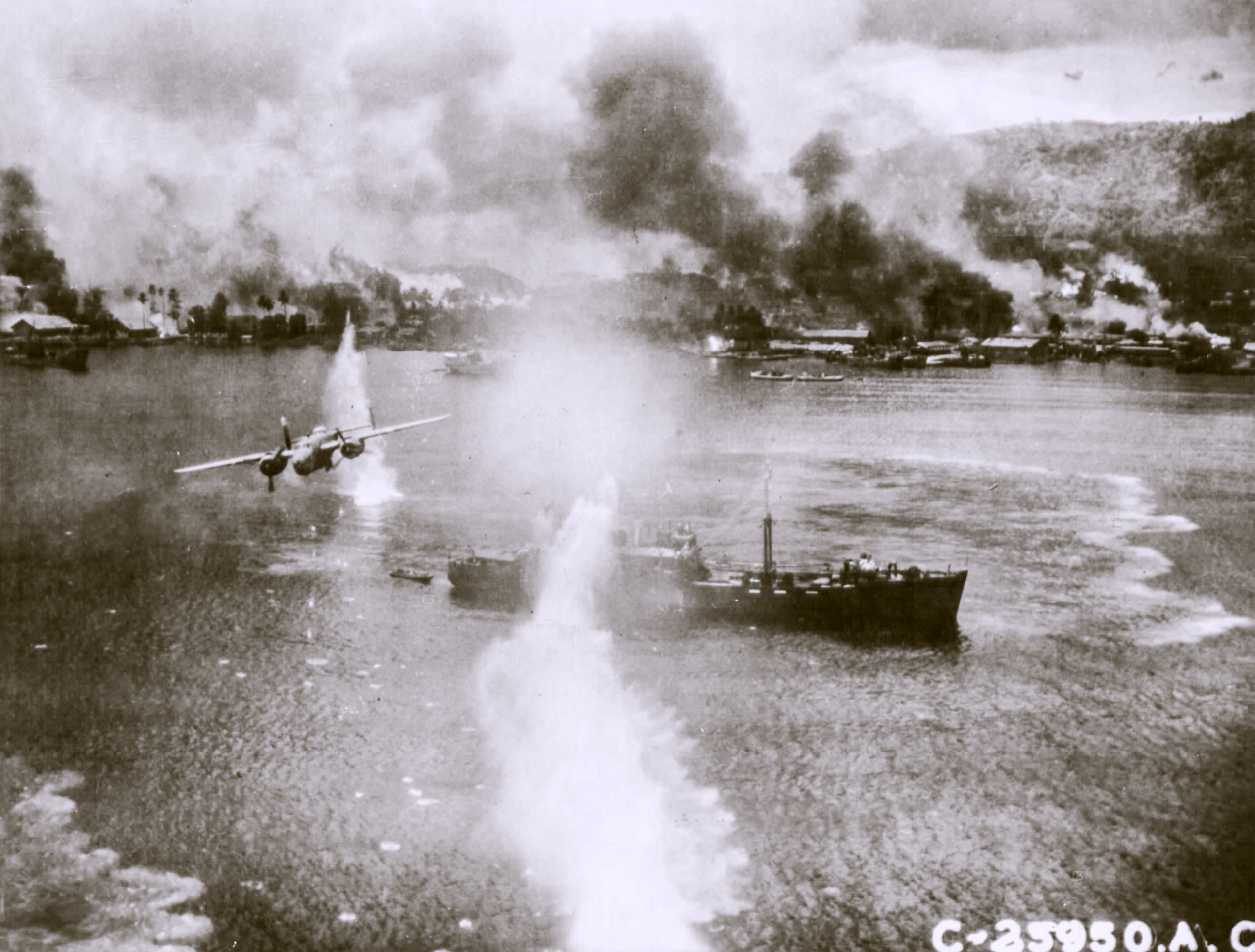 5AF B 25 Mitchells attacking IJN Freighters at Rabaul New Britain 4th Nov 1943-01
