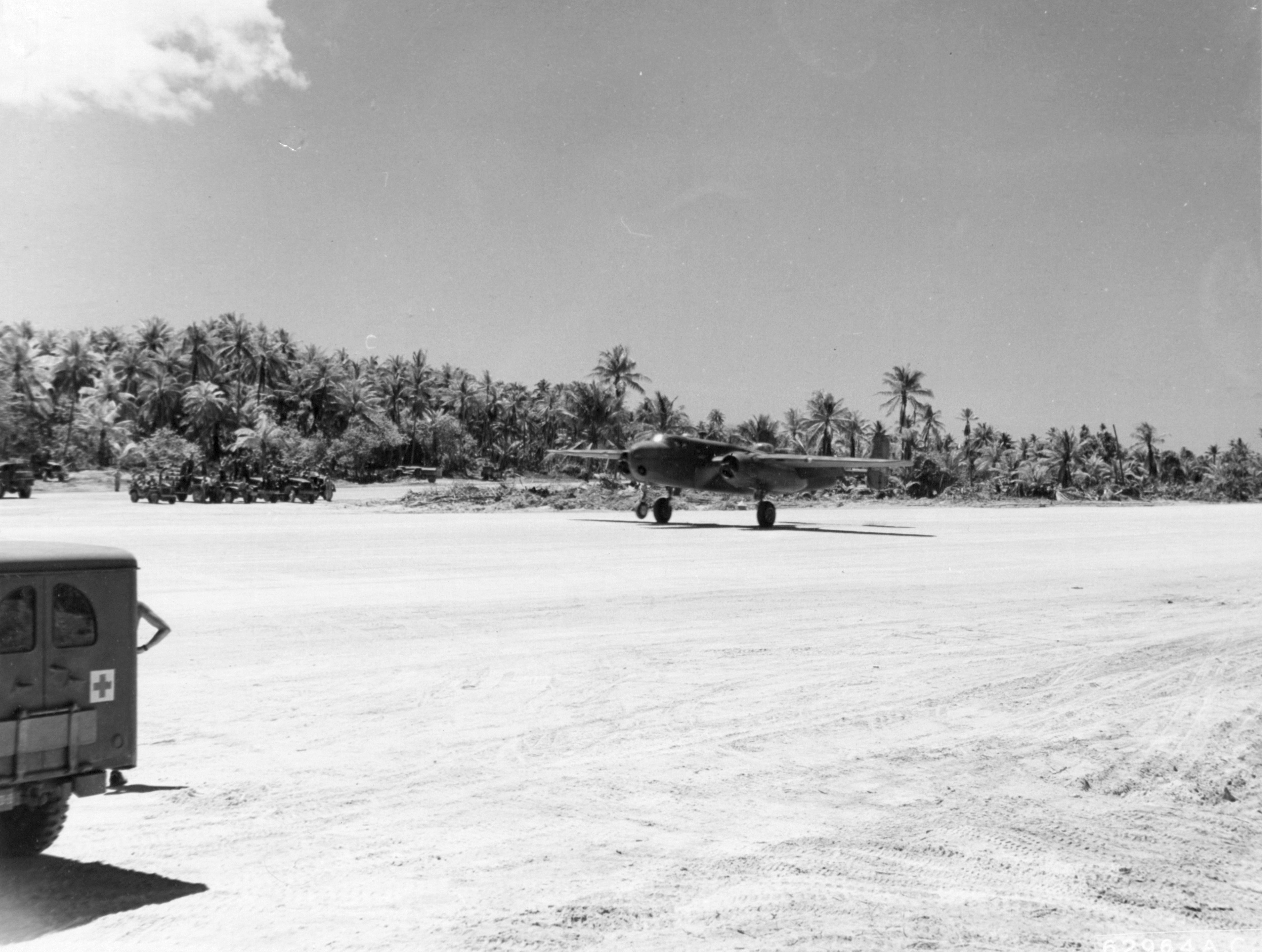 B 25 Mitchell 41BG47BS landing at O'Hara field Apamama Island Gilbert Islands Jan 1944-NA1168