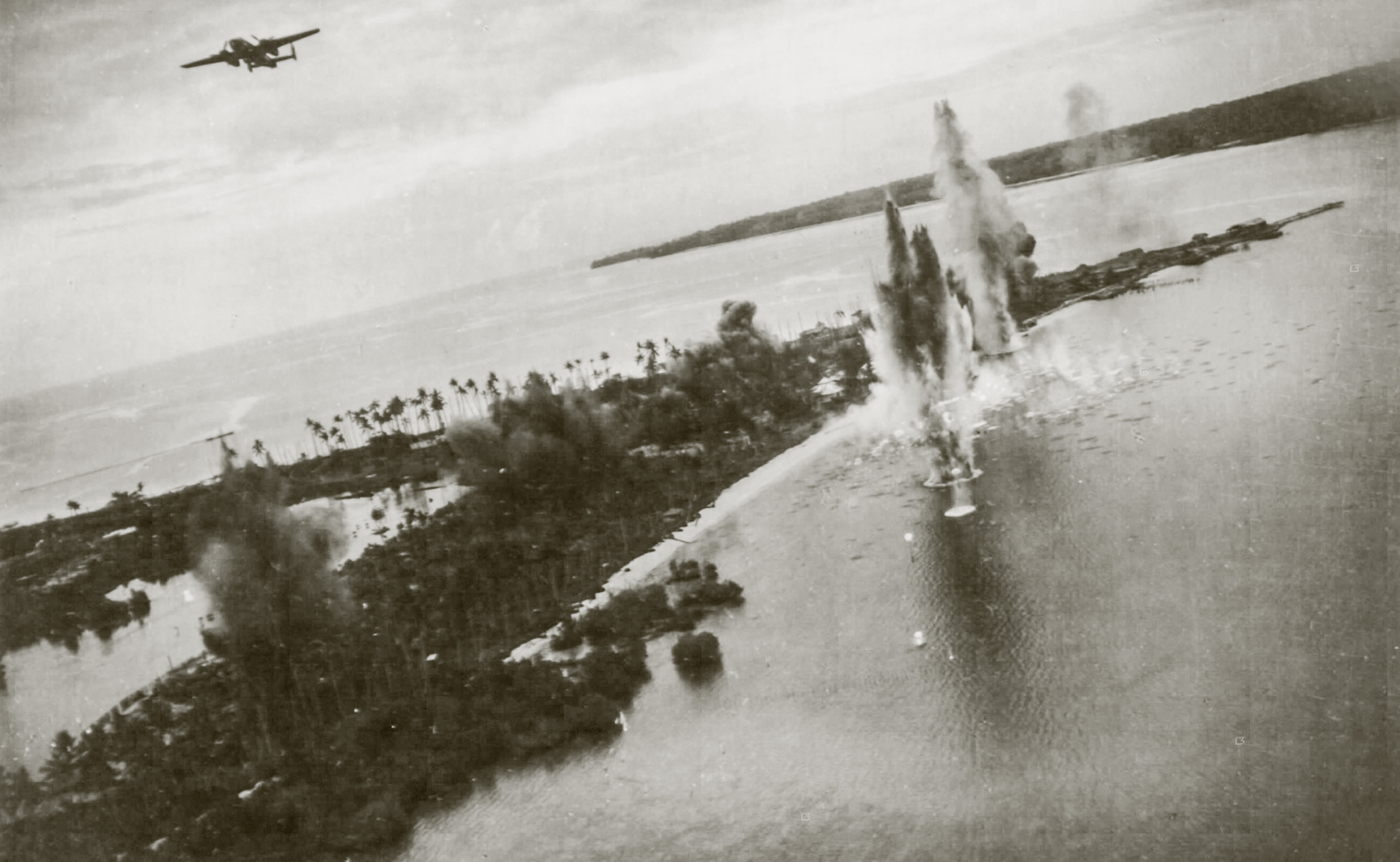 B 25 Mitchell 5AF 38BG71BS attacking coastal vessels at Dobo Dutch New Guinea 26th May 1944-01