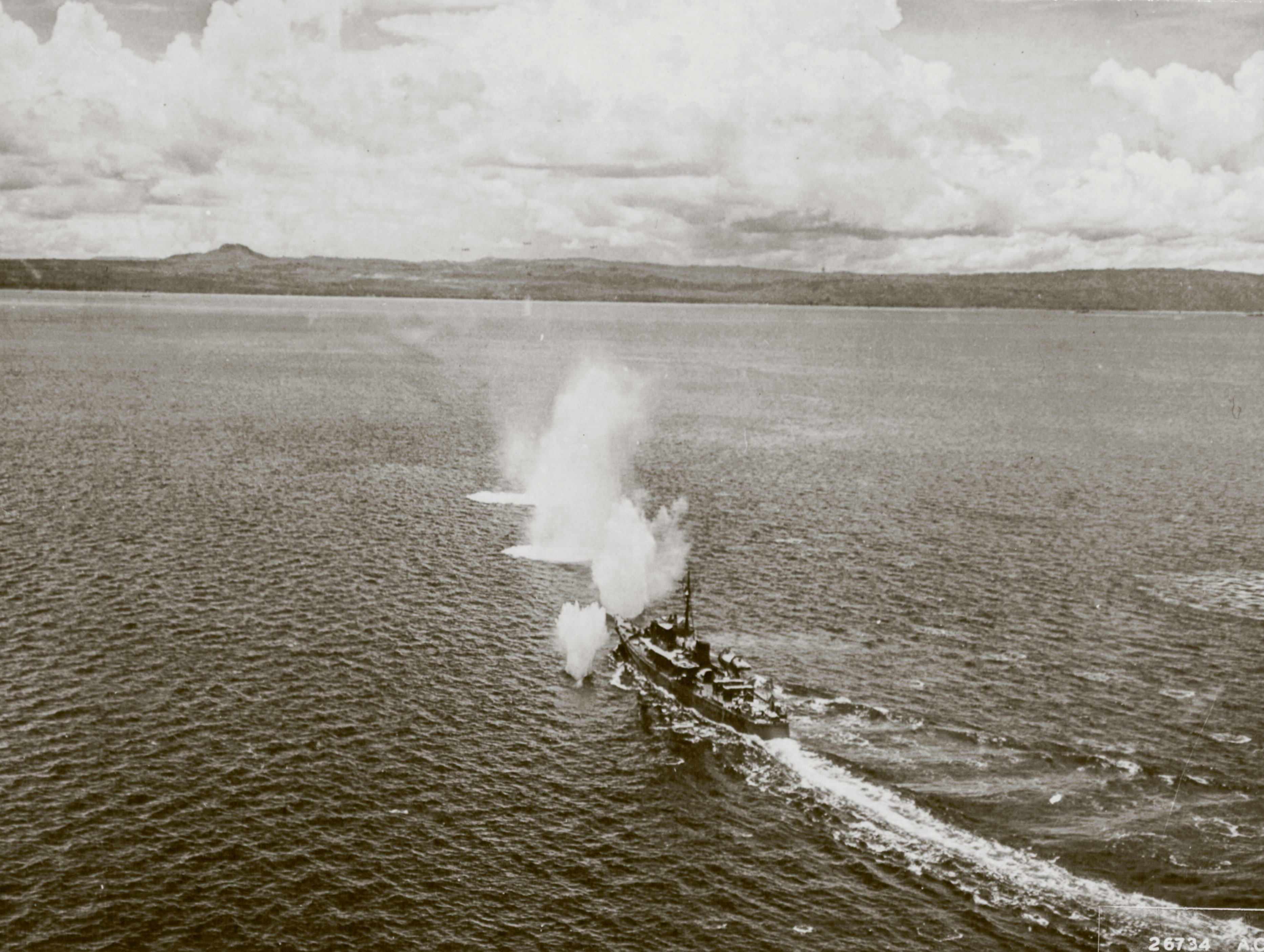 B 25 Mitchells skip bomb a Japanese Corvette 0ff New Britain near Rabaul 6th Jan 1944-01