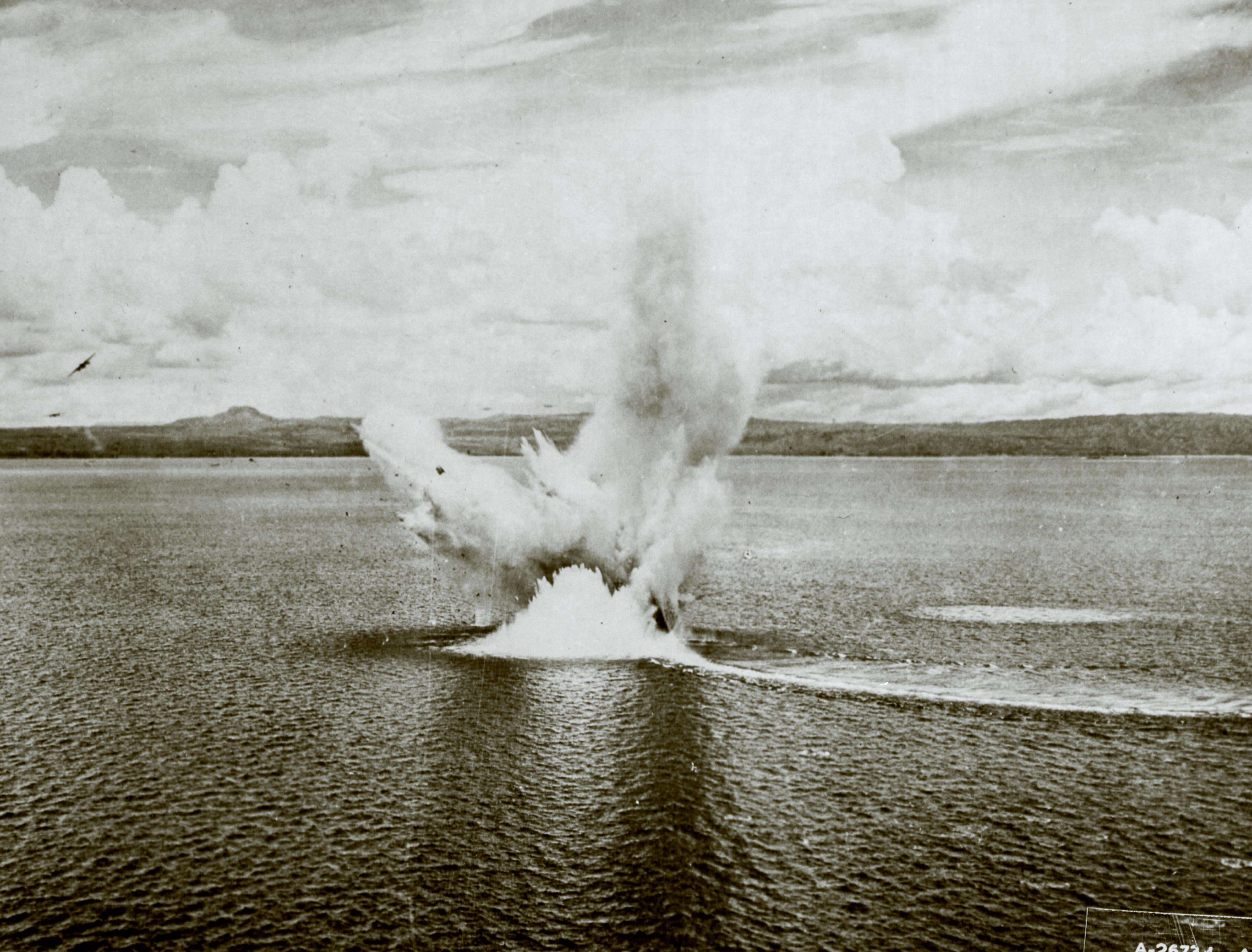 B 25 Mitchells skip bomb a Japanese Corvette 0ff New Britain near Rabaul 6th Jan 1944-02