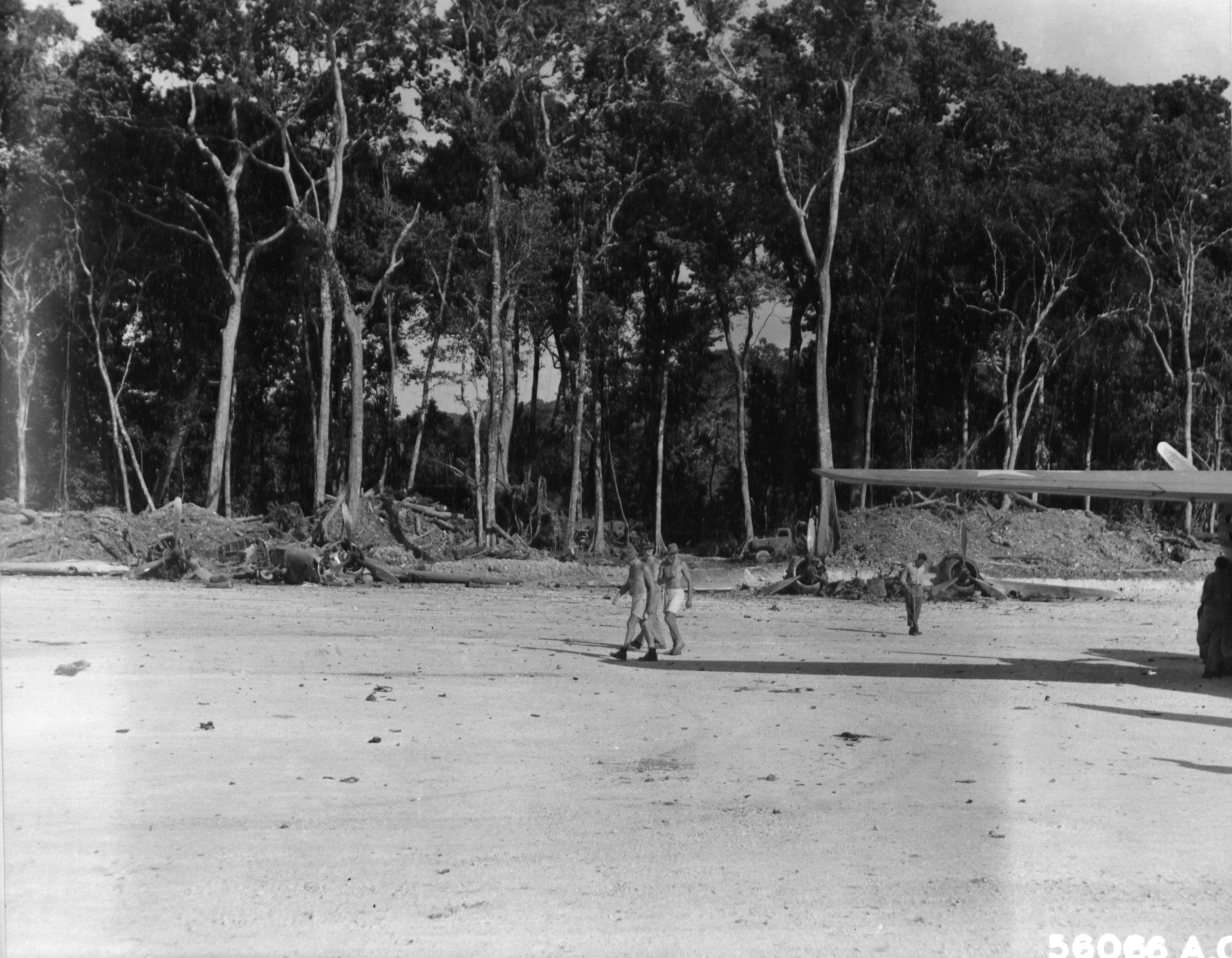 Destroyed Japanese aircraft abandoned on the Munda airstrip New Georgia Solomons 9th Aug 1943-NA1209