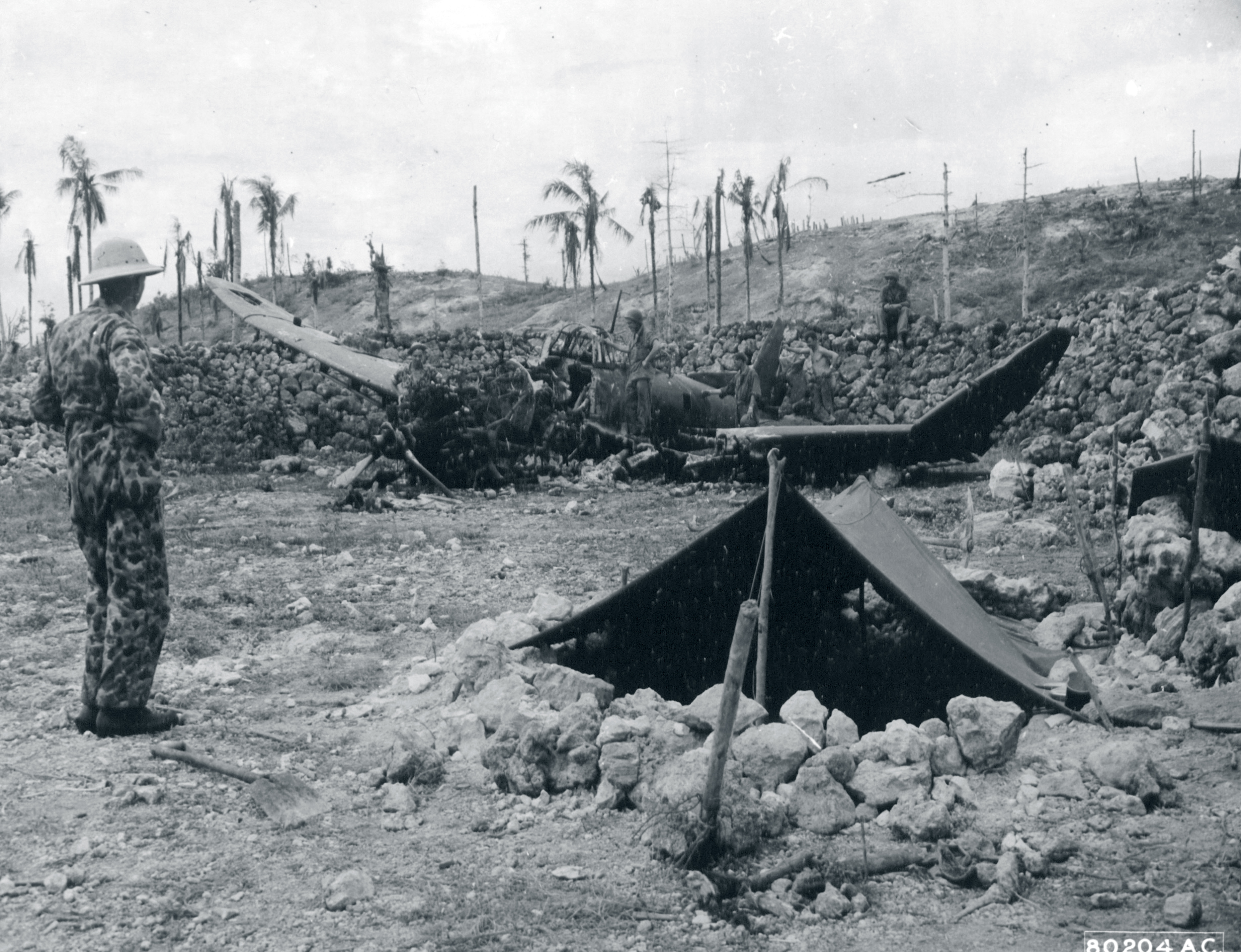 Destroyed Japanese aircraft abandoned on the Munda airstrip New Georgia Solomons 9th Aug 1943-NA1215
