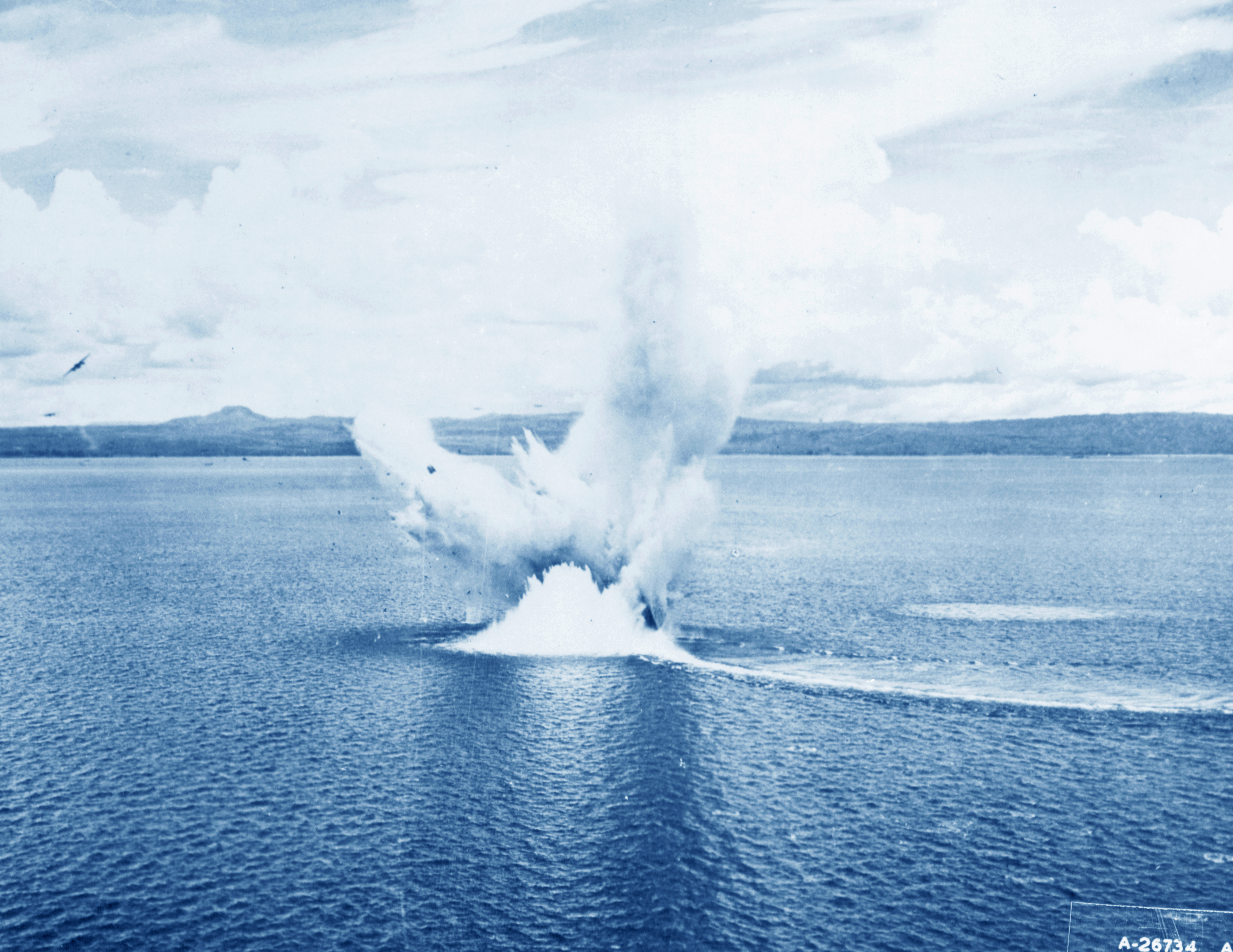IJN Japanese Corvette zig zagged frantically off Rabaul but was sunk by 5AF B 25s 1944-NA268