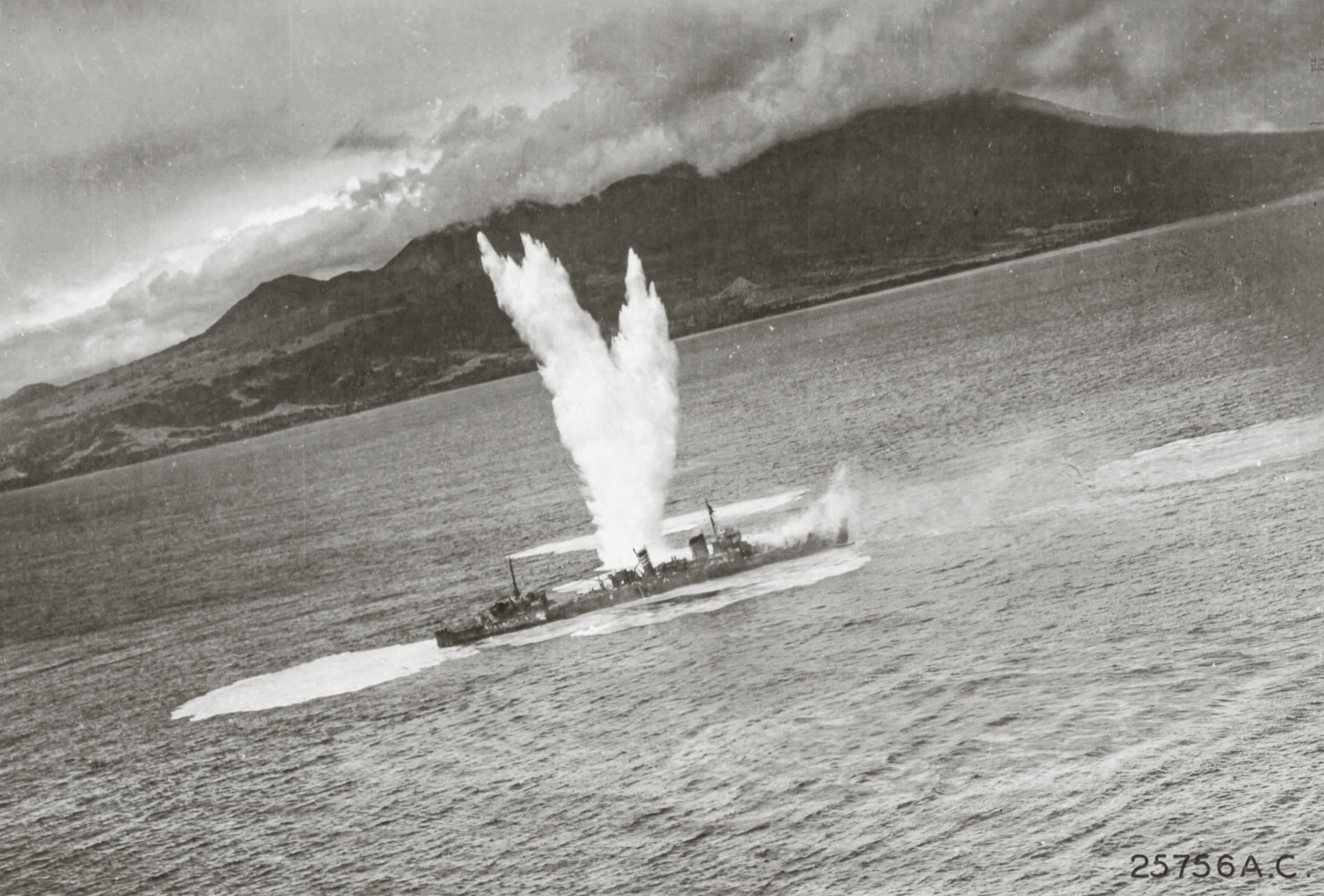 Raid on Cape Gloucester New Briatin score a direct hit on a Japanese Destroyer 28th Jul 1943-01