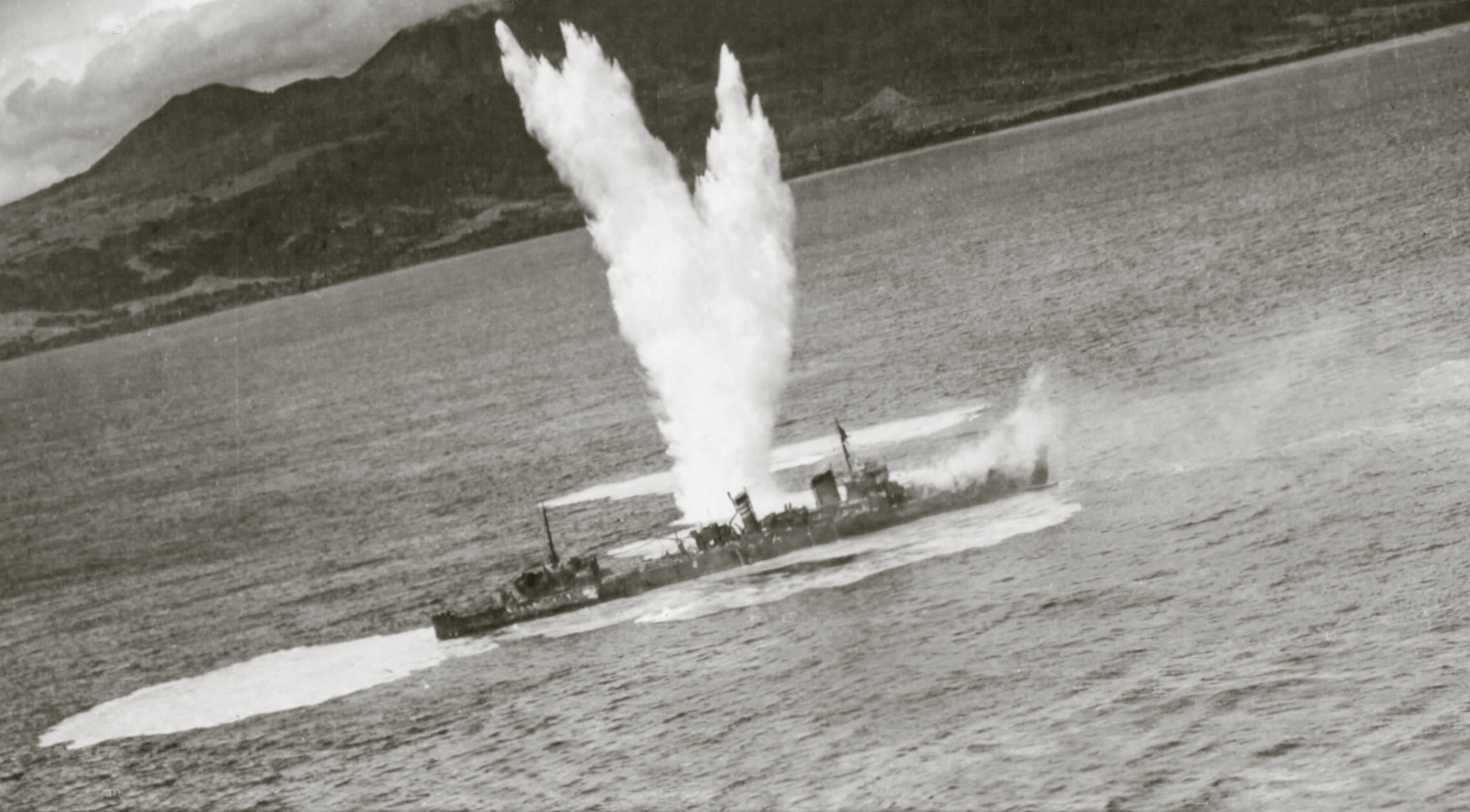 Raid on Cape Gloucester New Briatin score a direct hit on a Japanese Destroyer 28th Jul 1943-02