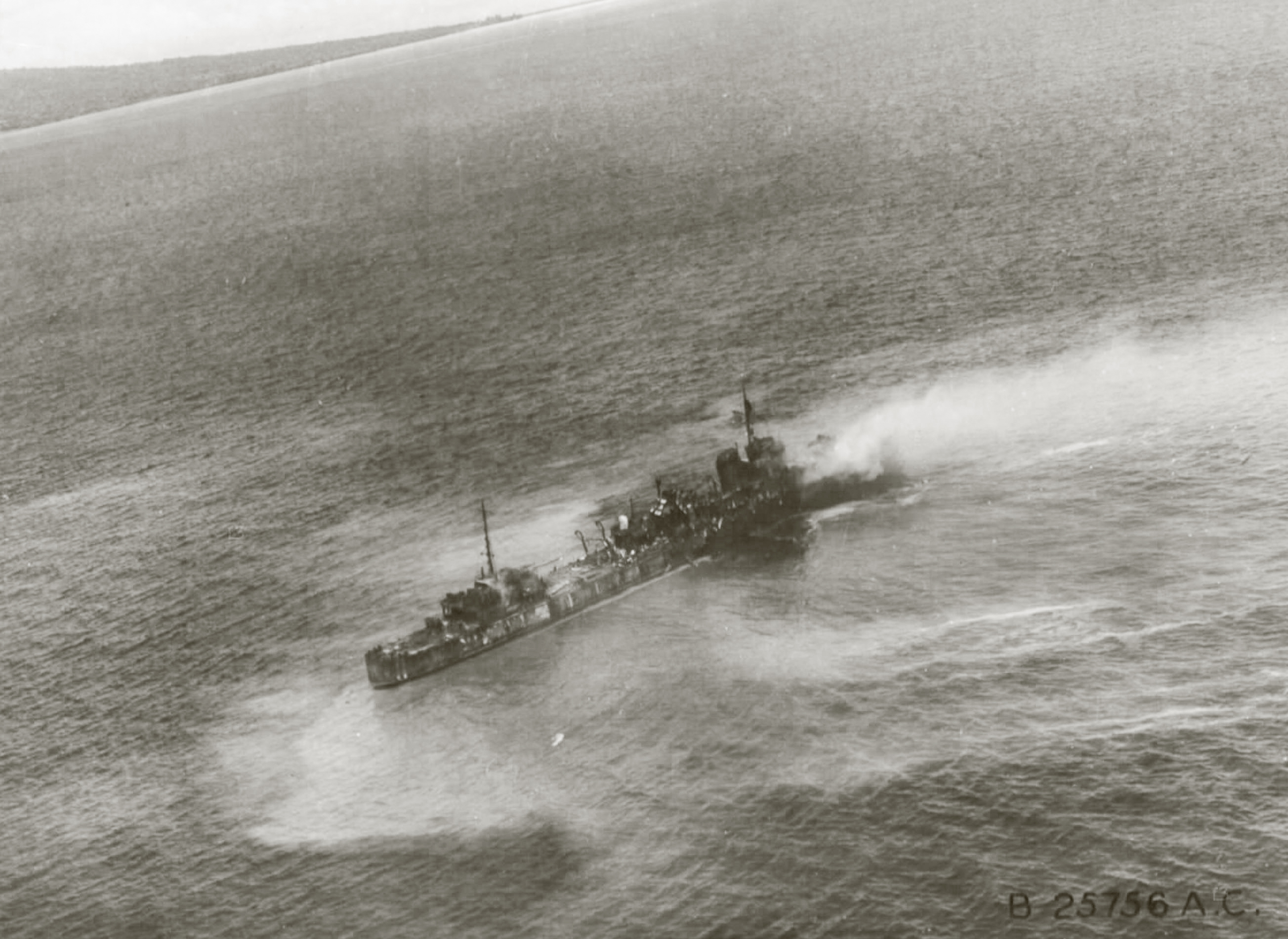 Raid on Cape Gloucester New Briatin score a direct hit on a Japanese Destroyer 28th Jul 1943-04