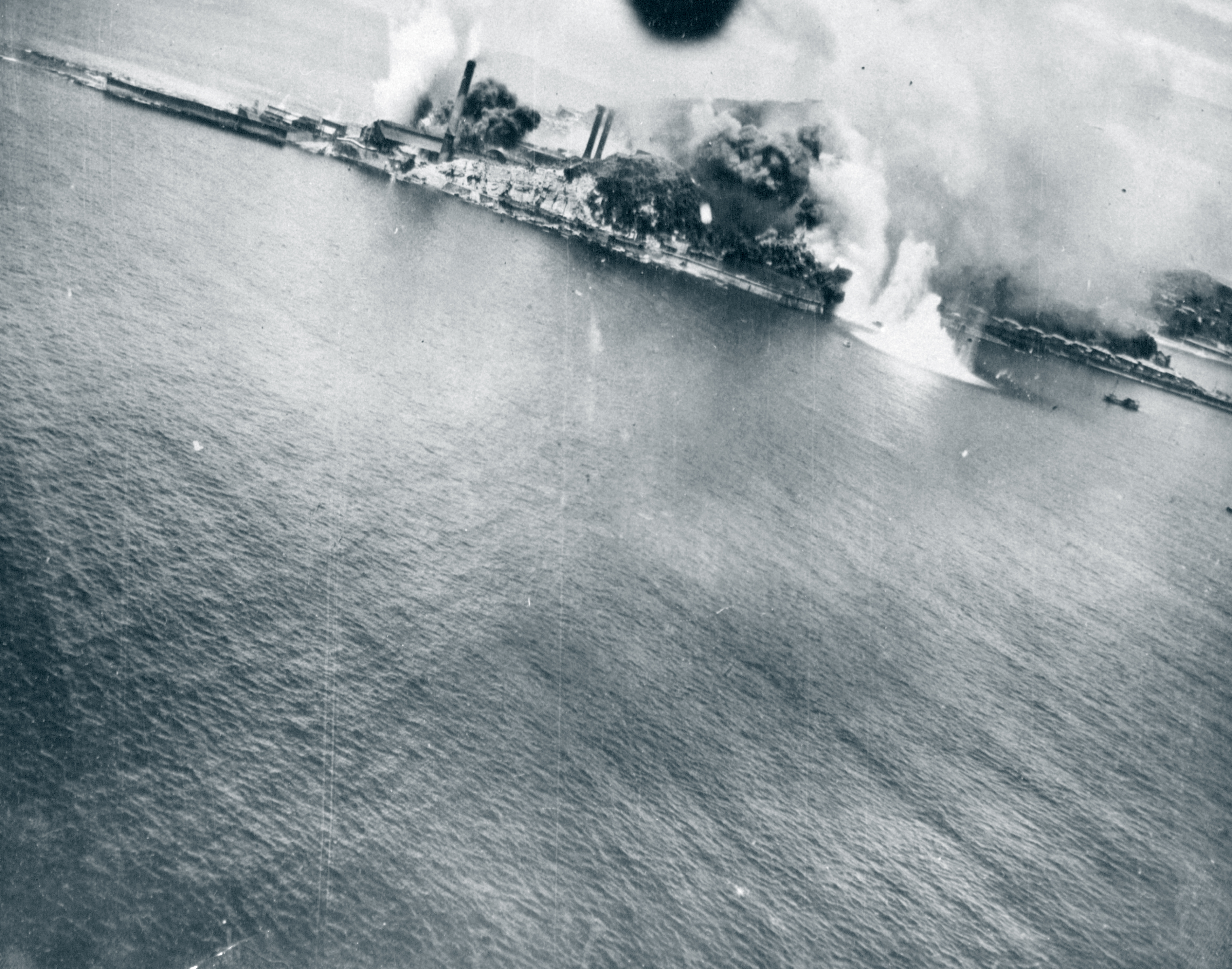 Target Japanese Oil Refinery at Koyagi Shima is hit by 5AF B 25 Mitchells 31st July 1945-NA386