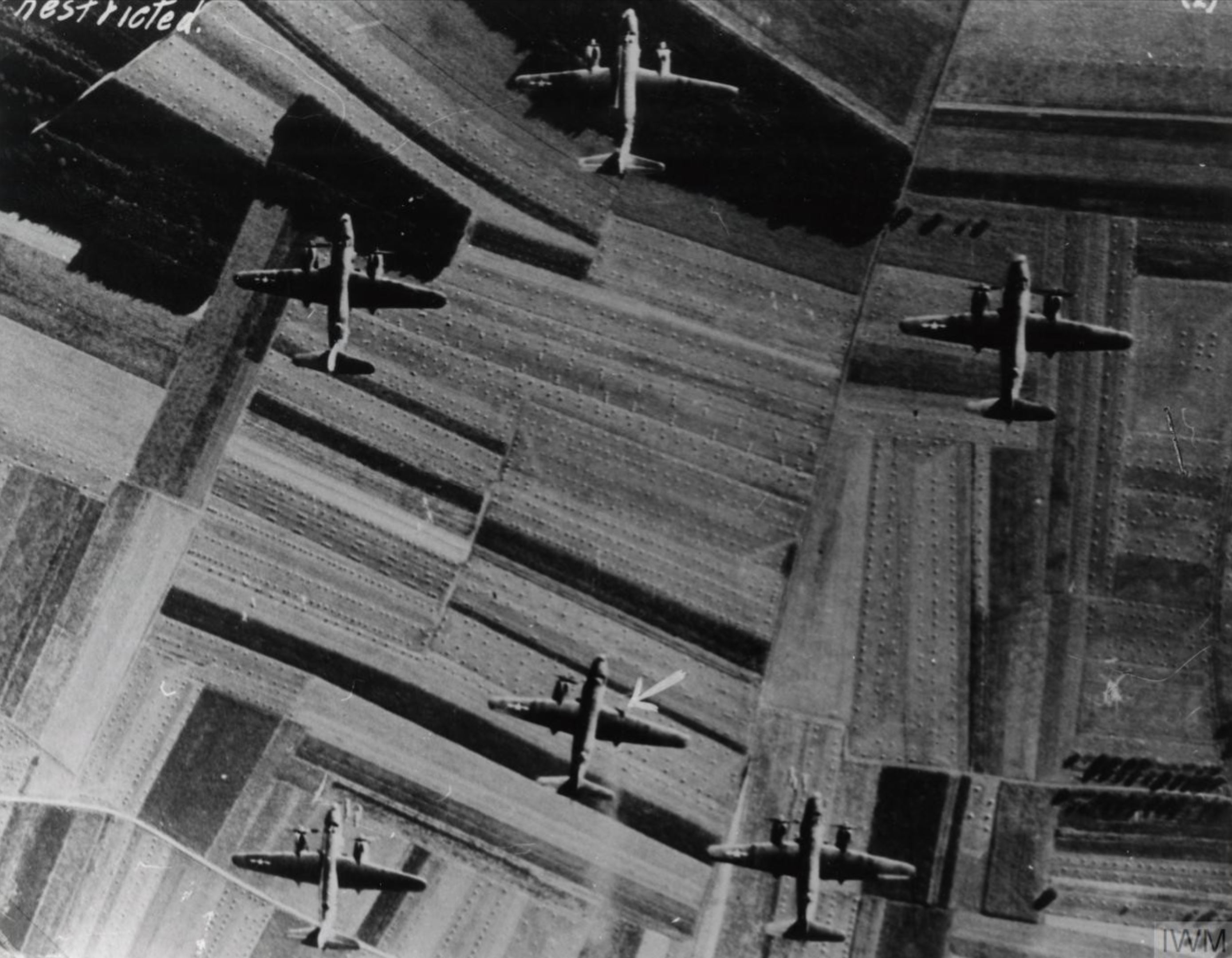 USAAF B 26 Marauder 9AF 391BG hit by falling bombs during a mission over Cherisy France 13 Aug 1944 FRE13719