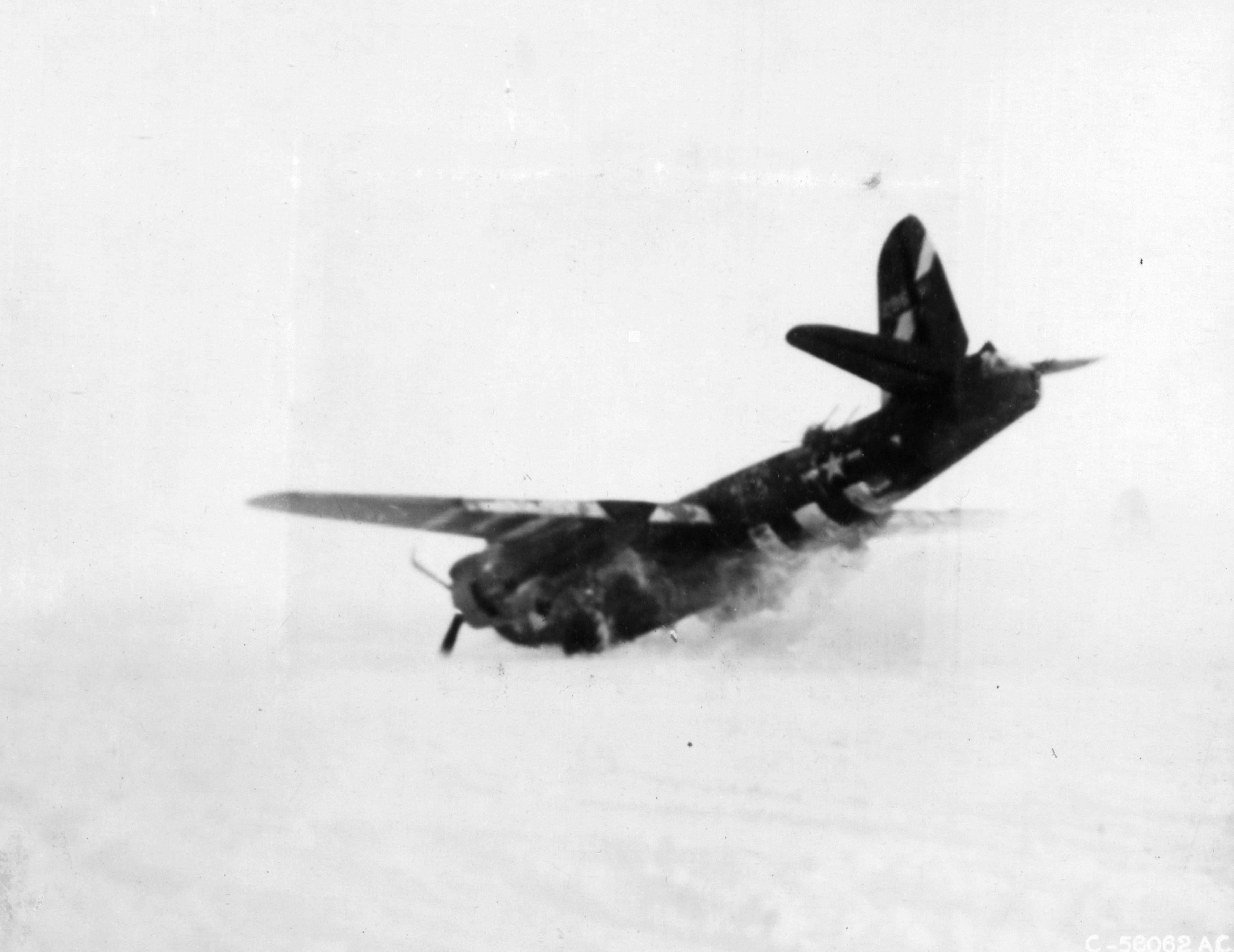 USAAF B-26 Marauder 9AF 397BG nose wheel breaks during landing France 31st Jan 1945-342-FH 001127