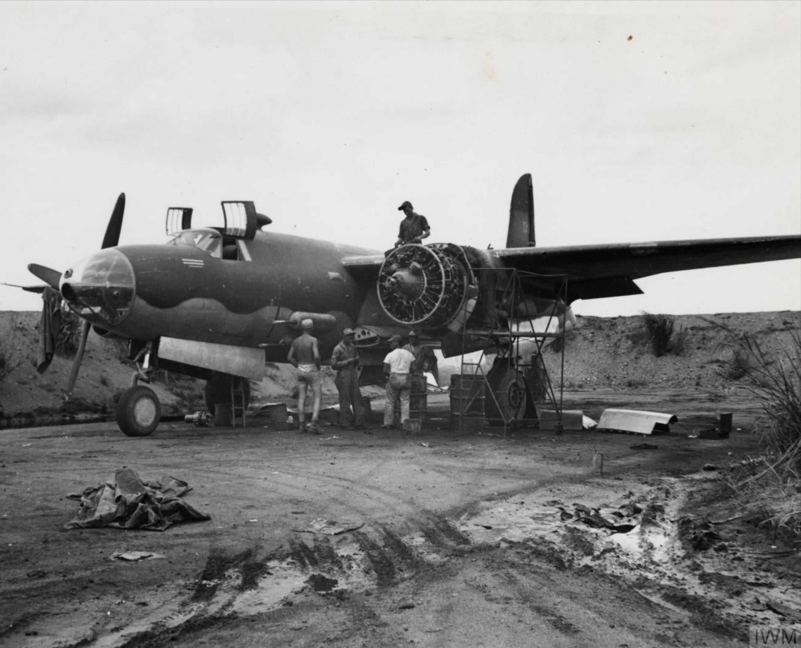 USAAF B 26 Marauder under going left engine maintenance New Guinea FRE13733
