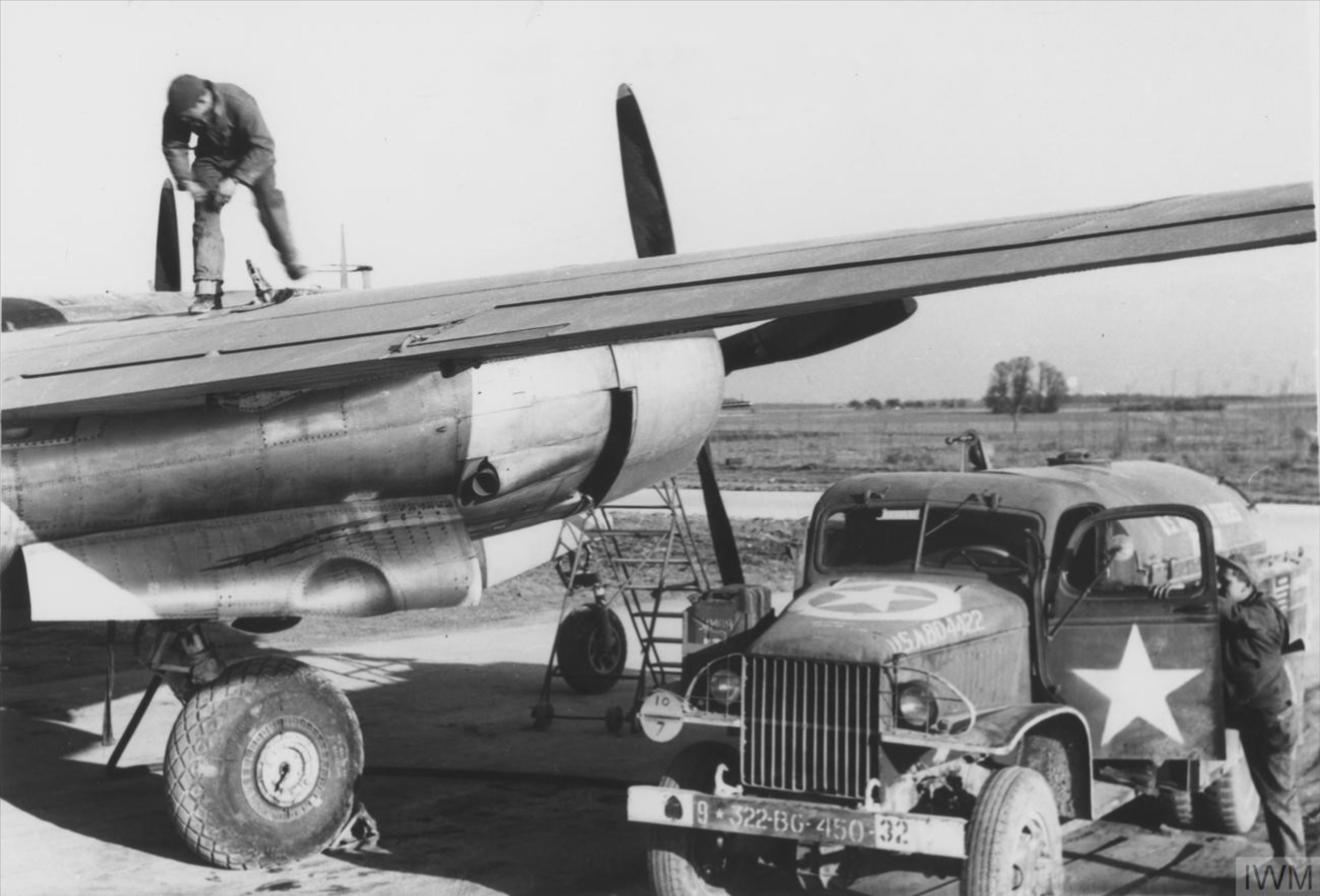 USAAF B-26 Marauders 9AF 322BG450BS being refueled at Andrews Field airbase FRE9273