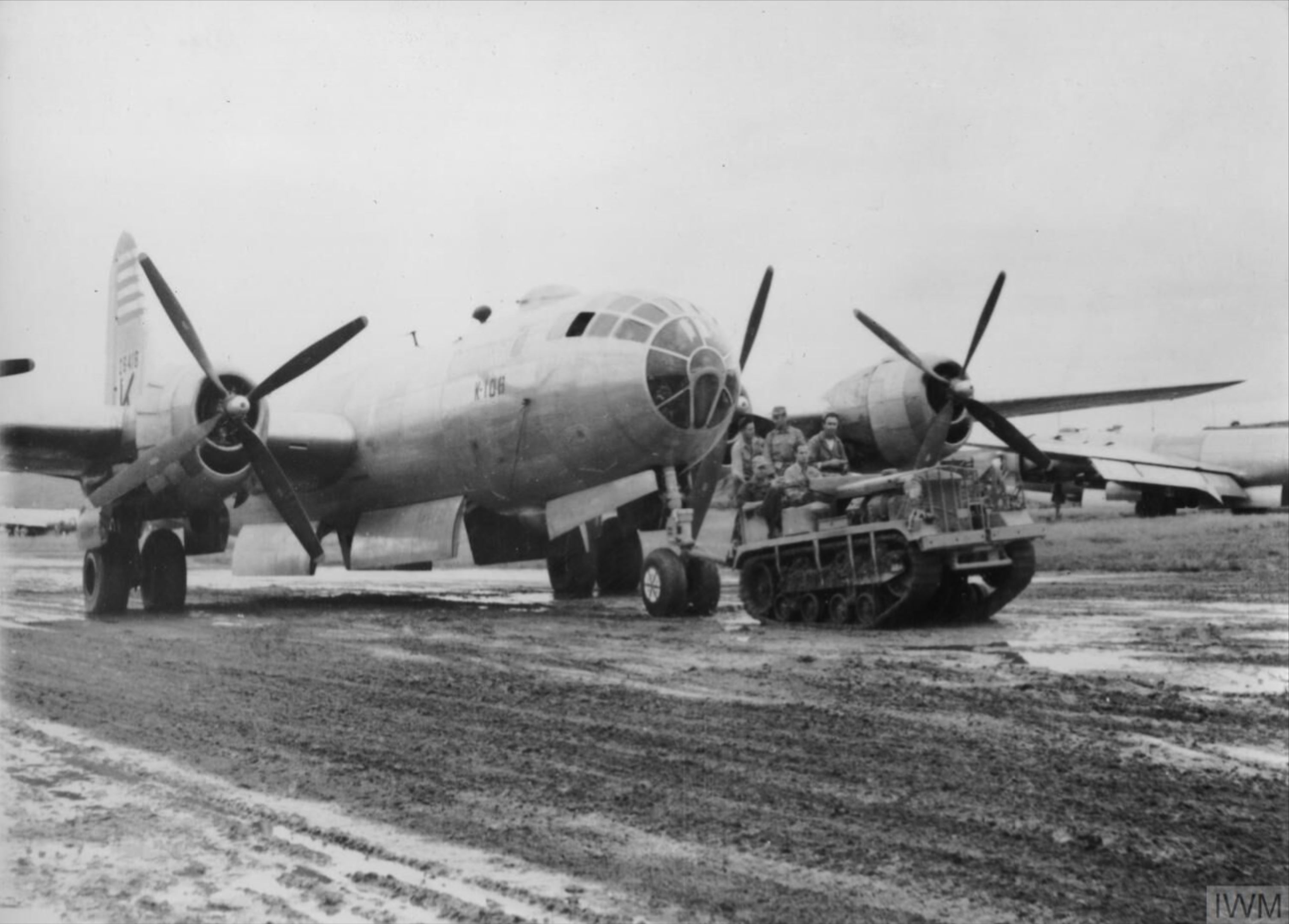 42-6416 Boeing B-29A Superfortress 20AF being toed by a Cletrac at a base in China FRE11931