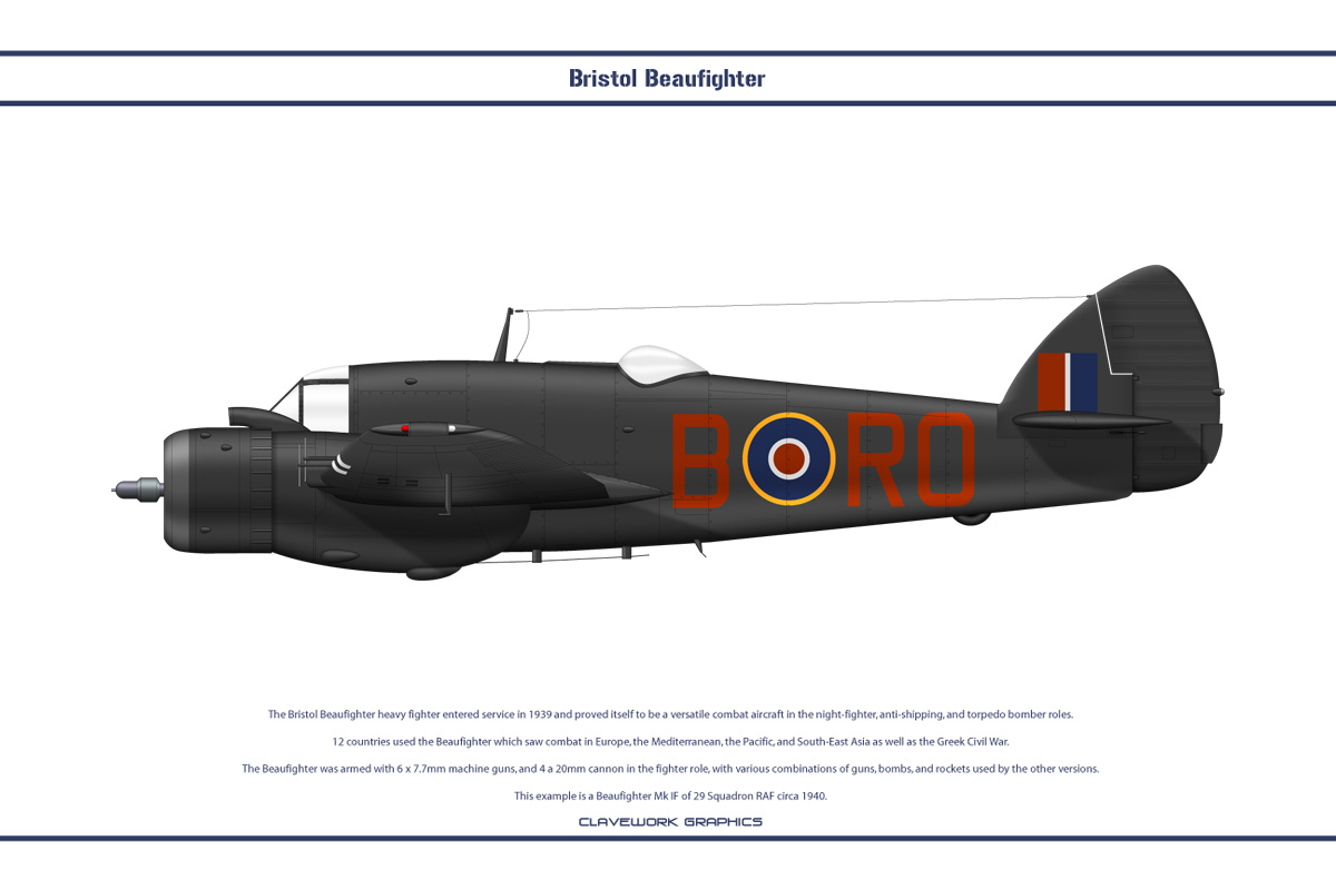 Beaufighter IF RAF 29Sqn ROB V8324 Mellersh West Malling Aug Sep 1942 Clavework Profile 0A