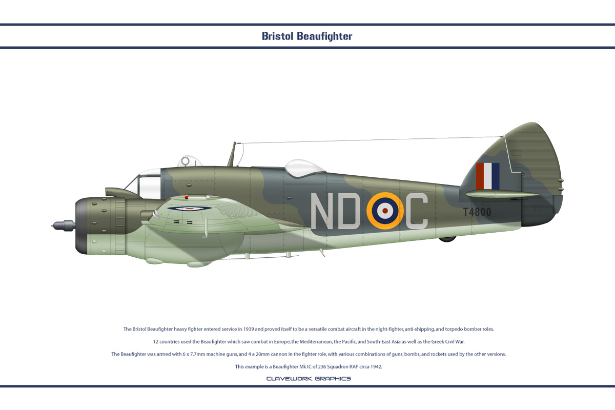 Beaufighter IC RAF 236Sqn NDC T4800 Wattisham Suffolk 12th June 1942 Clavework Profile 0A