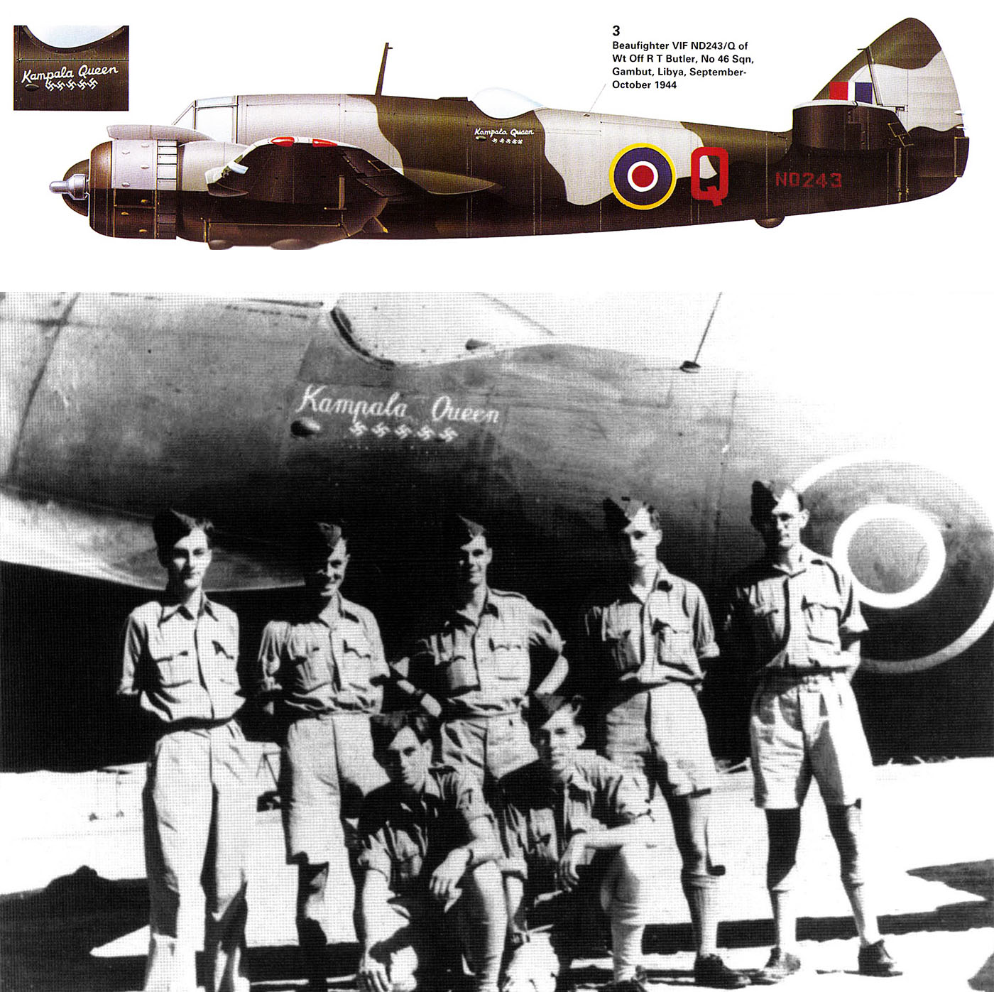 Beaufighter VIF RAF 46Sqn Q Kampala Queen ND243 WtOff RT Butler Gambut Libya Sep 1944 Profile 0A