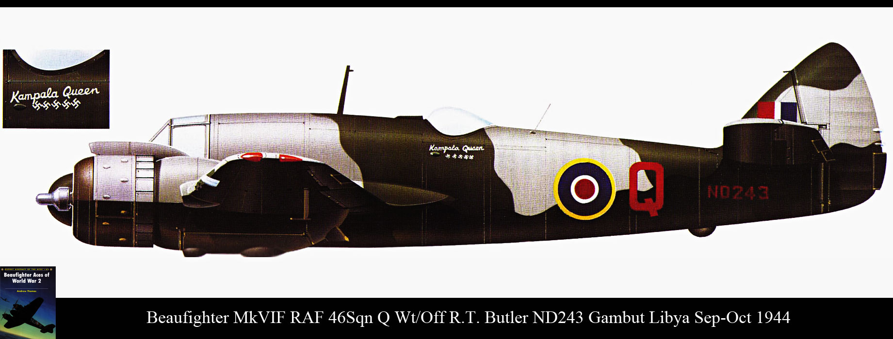 Beaufighter VIF RAF 46Sqn Q Kampala Queen ND243 WtOff RT Butler Gambut Libya Sep 1944 Profile 0B
