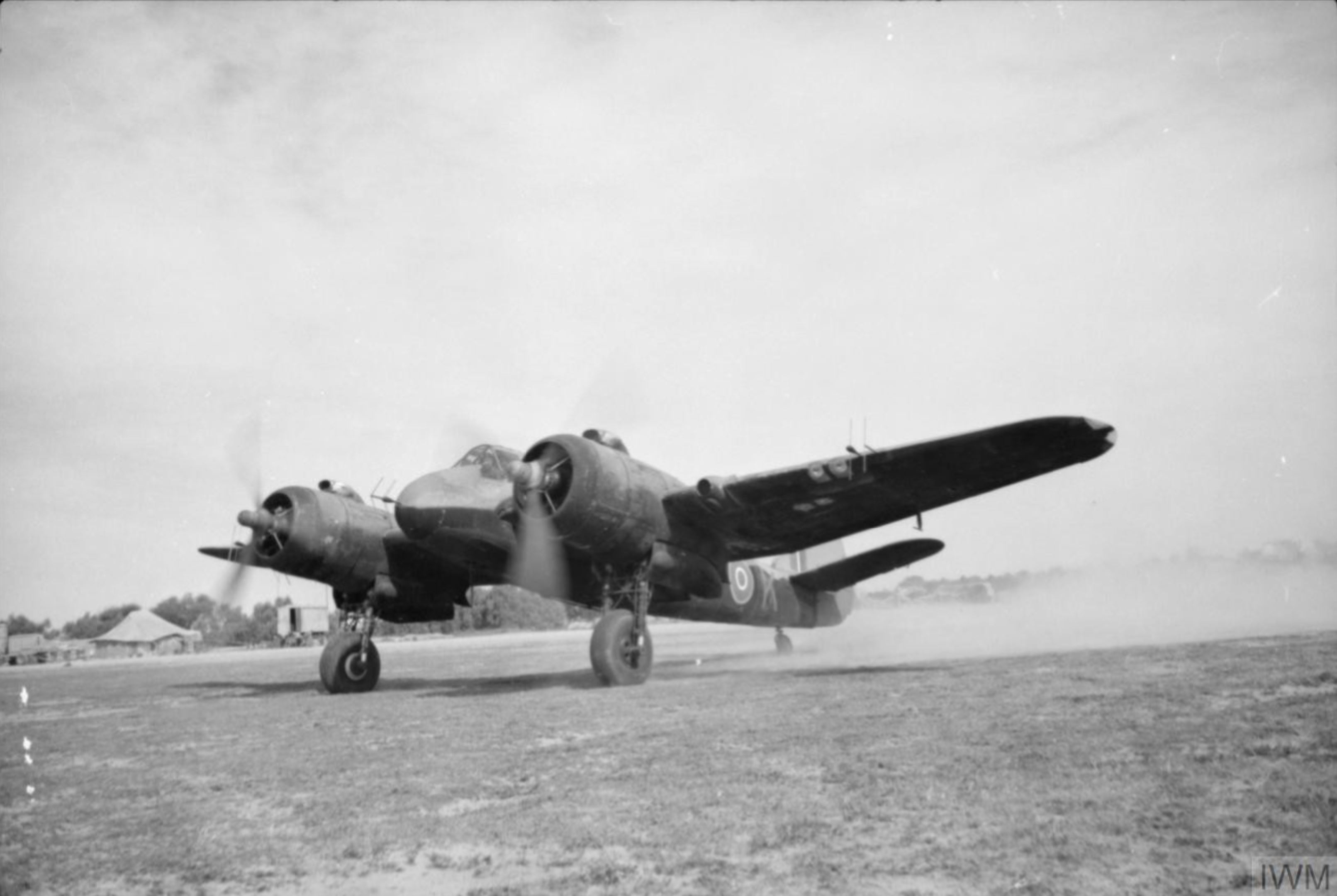 Beaufighter VIF RAF 89Sqn K V8380 running up its engines at Castel Benito Libya IWM CH15213