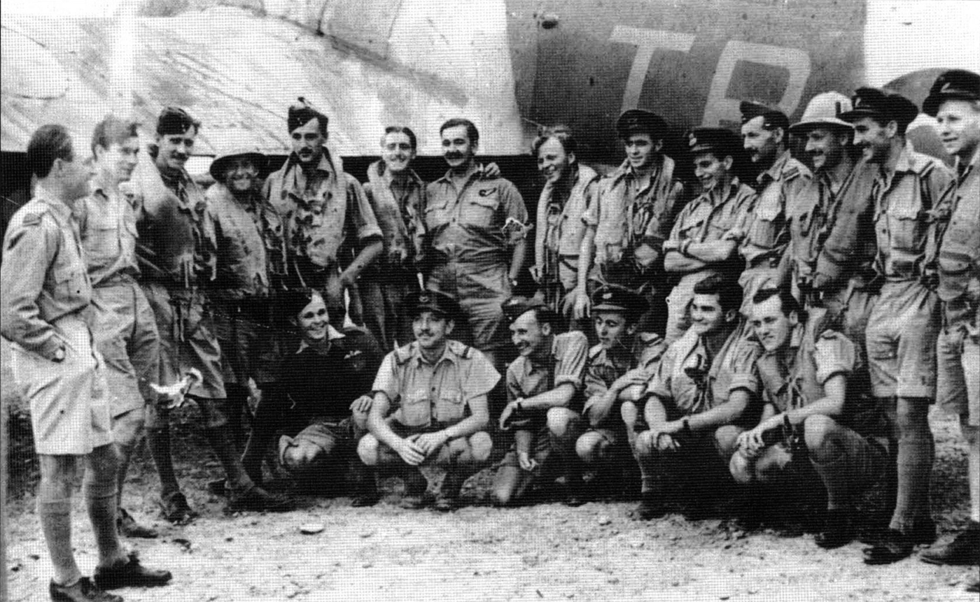 Aircrew RAF 153Sqn pose for a group photo in front of Beaufighter TBA Algeria July 1943 01