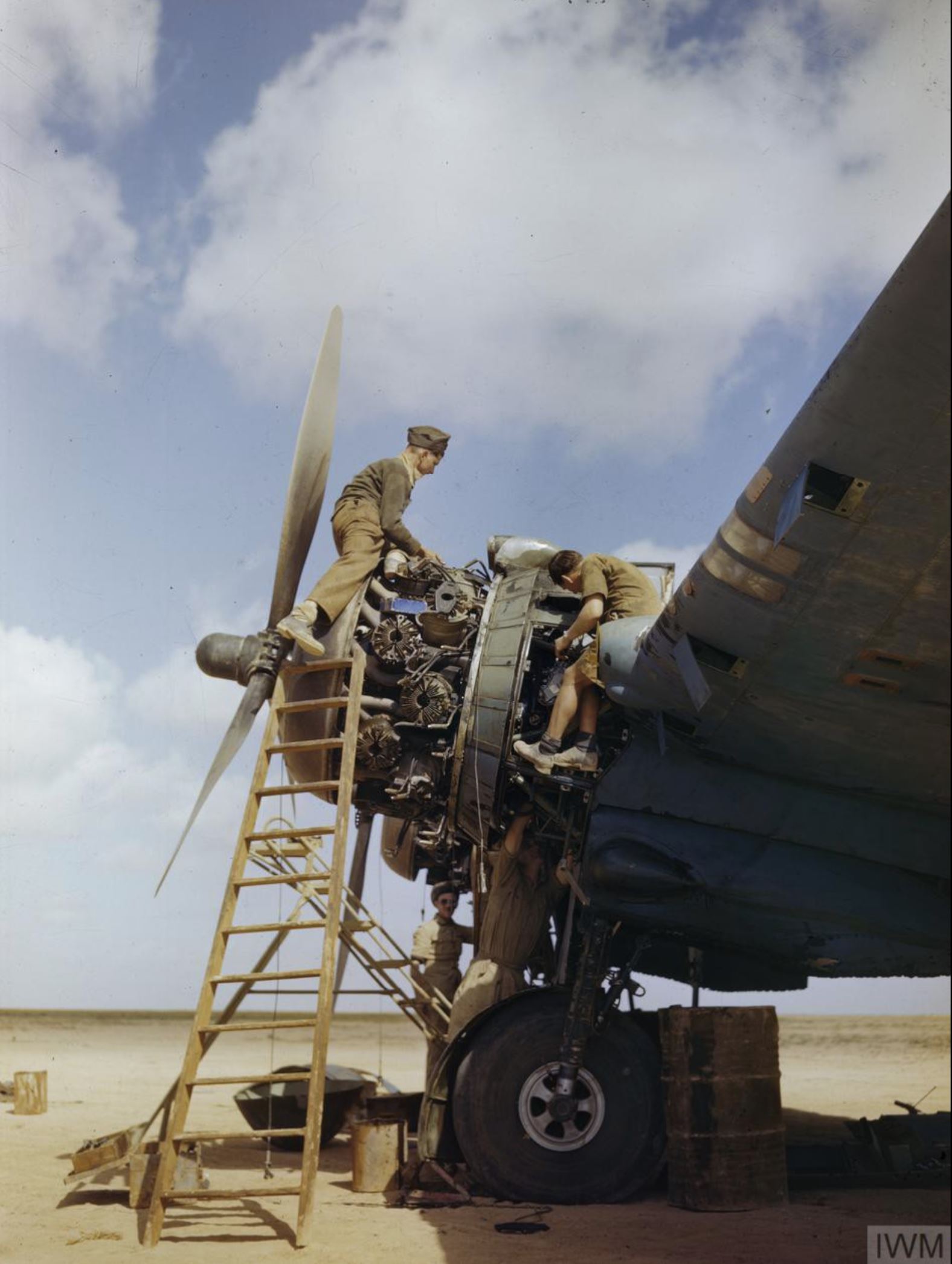 Beaufighter IC RAF 252Sqn under repair note patched over 303 wing gun ports at El Magrun Libya IWM TR901