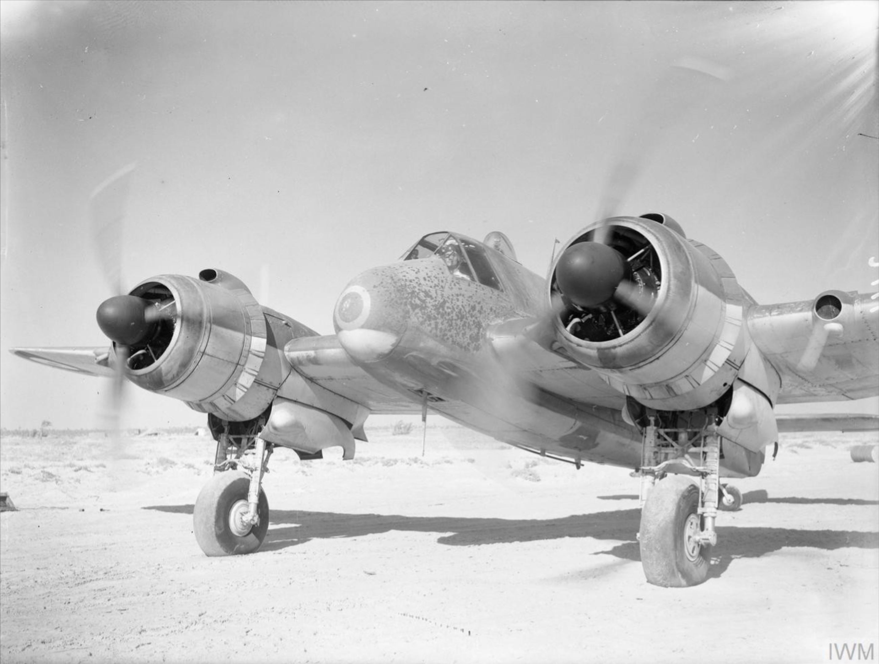 Beaufighter IC RAF 272Sqn O T3314 running up its engines at Edku Egypt 1942 IWM CM1127
