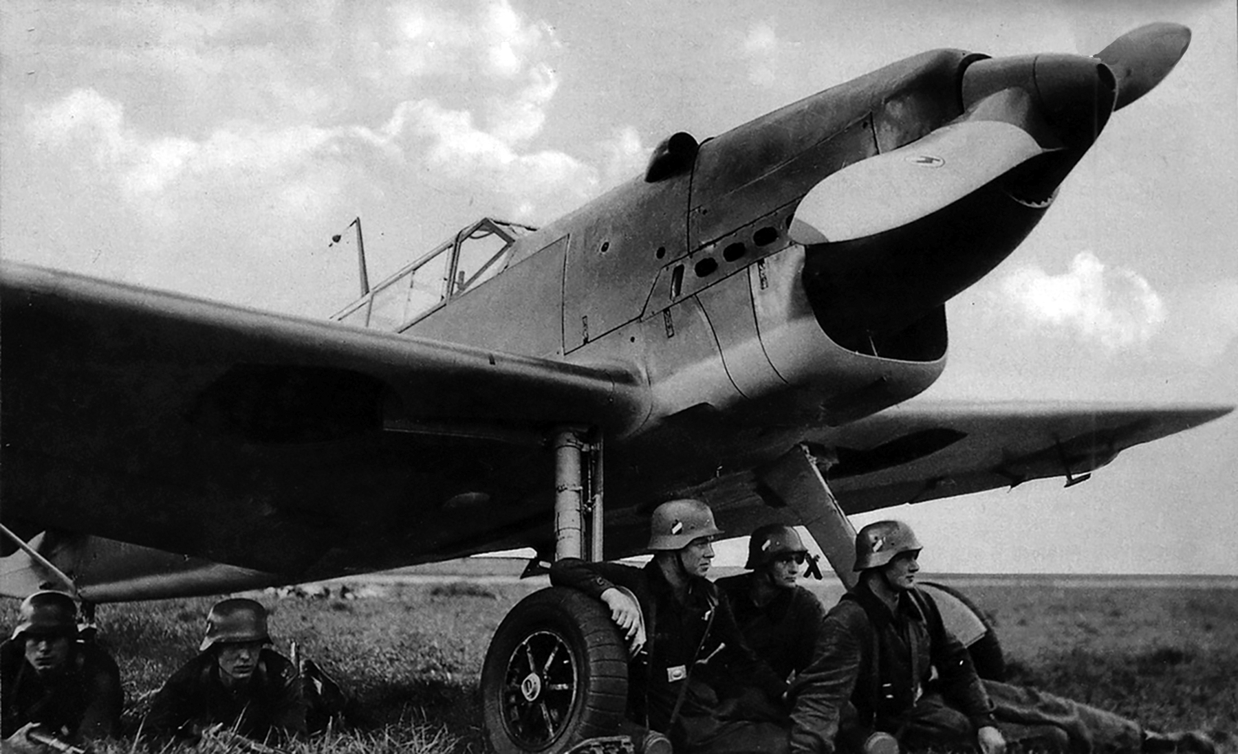 The Messerschmitt Bf 109 is a German World War II fighter aircraft that was the backbone of the Luftwaffe's fighter force. The Bf 109 first saw operational service in 1937 during the Spanish Civil War and was still in service at the dawn of the jet age at the end of World War II in 1945. It was one of the most advanced fighters of the era, including such features as all-metal monocoque construction, a closed canopy, and retractable landing gear. It was powered by a liquid-cooled, inverted-V12 aero engine. From the end of 1941, the Bf 109 was steadily being supplemented by the Focke-Wulf Fw 190. It was commonly called the Me 109, most often by Allied aircrew and among the German aces, even though this was not the official German designation.