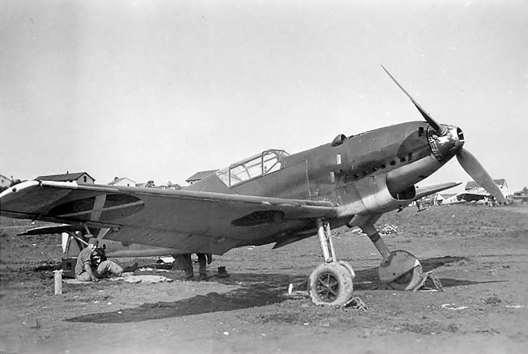 The Messerschmitt Bf 109 is a German World War II fighter aircraft that was the backbone of the Luftwaffe's fighter force. The Bf 109 first saw operational service in 1937 during the Spanish Civil War and was still in service at the dawn of the jet age at the end of World War II in 1945. It was one of the most advanced fighters of the era, including such features as all-metal monocoque construction, a closed canopy, and retractable landing gear. It was powered by a liquid-cooled, inverted-V12 aero engine. From the end of 1941, the Bf 109 was steadily being supplemented by the Focke-Wulf Fw 190. It was commonly called the Me 109, most often by Allied aircrew and among the German aces, even though this was not the official German designation.